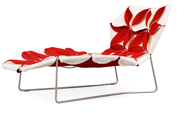 座椅上花瓣綻放的效果,傳達著兩種截然不同的情緒。花瓣向上伸展賦予了一種獨特而女性化的蓬勃的生氣;而向下的花瓣則顯得格外嚴肅認真。