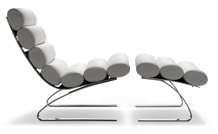 Reinhold Adolf & Hans Jurgen Schropfer为德国著名家具公司Cor设计了一款名为鼻窦系列的家具,这系列家具包括Sinus Lounge Chair(鼻窦躺椅)、Sinus Lounge Ottoman(鼻窦休闲脚踏)及其组合Sinus Lounge Chair and Ottoman(鼻窦躺椅&脚踏)。躺椅造型就像一只只圆形的鼻窦组合在一起,材质是不锈钢框架椅身、进口皮革扪面、软包内部填充进口海绵,躺着上面非常的抒情惬意。