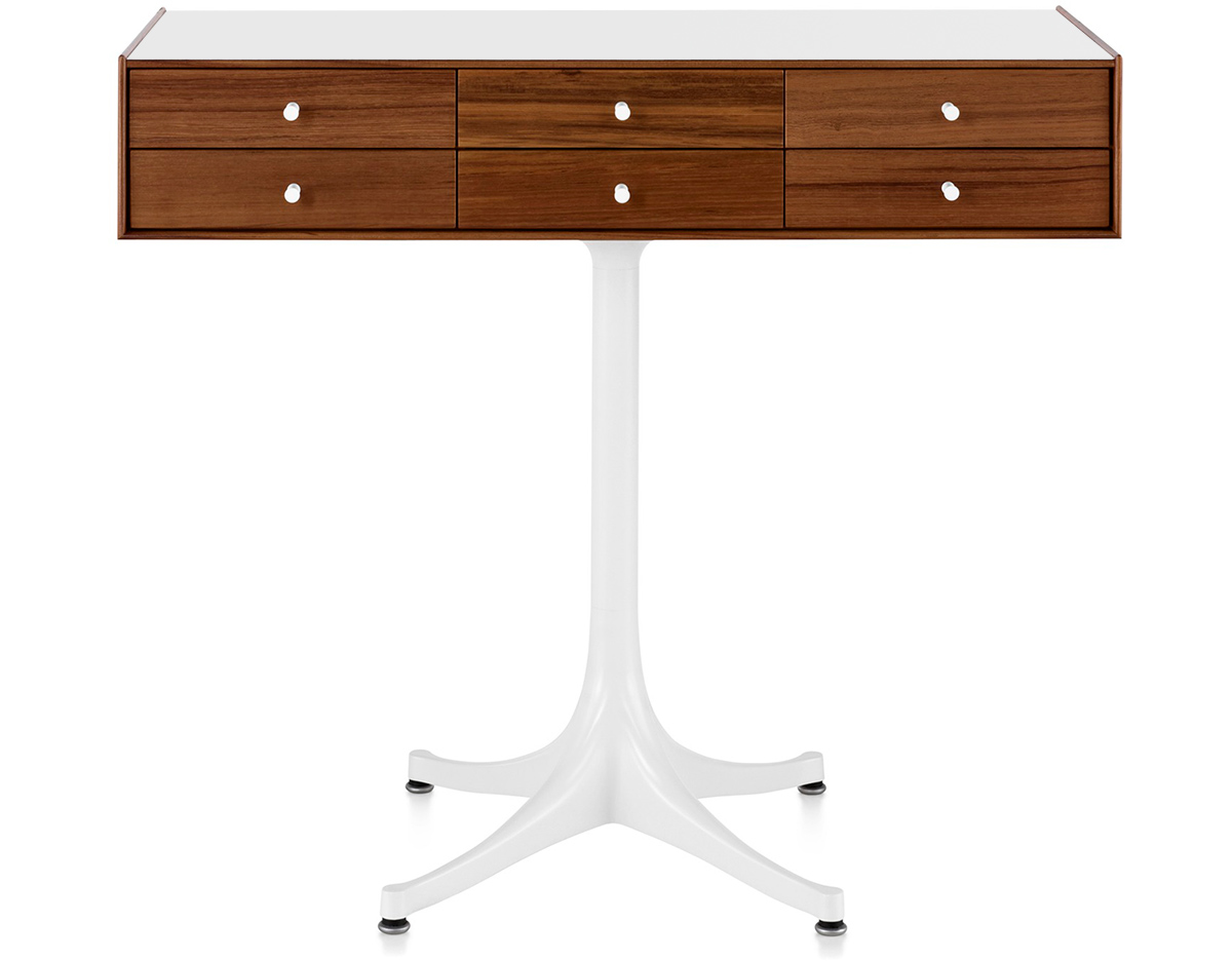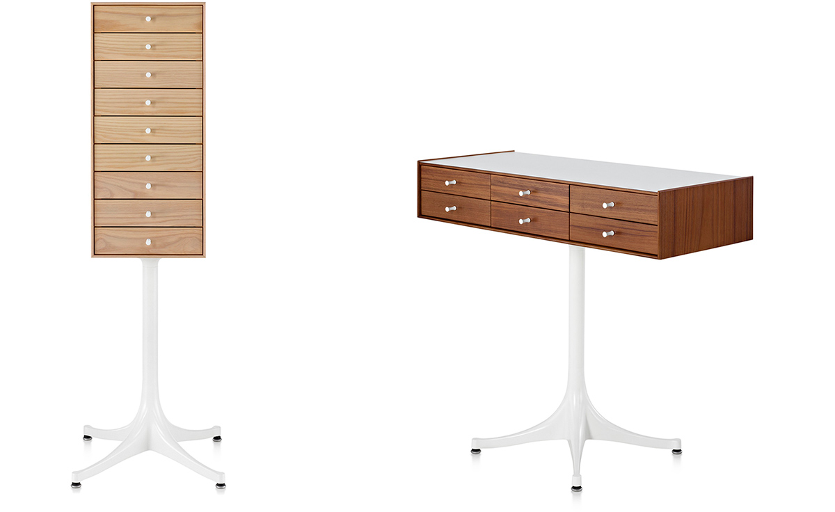 乔治·尼尔森(George Nelson)是美国极具影响力的建筑师、家具设计师和产品设计师,日本对George Nelson有着深远的影响。在他于1951年第一次到东京旅行,以及之后在那里的十几年,George Nelson迷上了日本的所有东西。这种影响最明显的的他于1952年设计的迷你箱。迷你箱的神奇处是可用来存放各种物品,是一个很多小抽屉小储物柜,方便您分类摆放各种生活物品。尼尔森设计的迷你箱最让人惊奇的是它几乎可以摆放在任何房间,无论是卧室,办公室,客厅等等任何您需要的地方,美观且不失和谐。每个抽屉都是木工们细心的安装设计,以保证高品质。抽屉采用胡桃或樱桃木皮贴面,基材为环保高密度板环保油漆喷涂、铸铝烤漆可调节脚架(4星级铝底座)、或玻璃钢一体成型脚架,抽屉贴心的配置有金属旋钮,方便打开与关上。