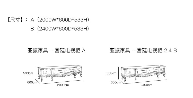 亚振家具 - 宫廷电视柜 产品尺寸/示意图