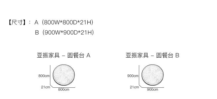 亚振家具 - 圆餐台木转盘-800含轨道 产品尺寸/示意图