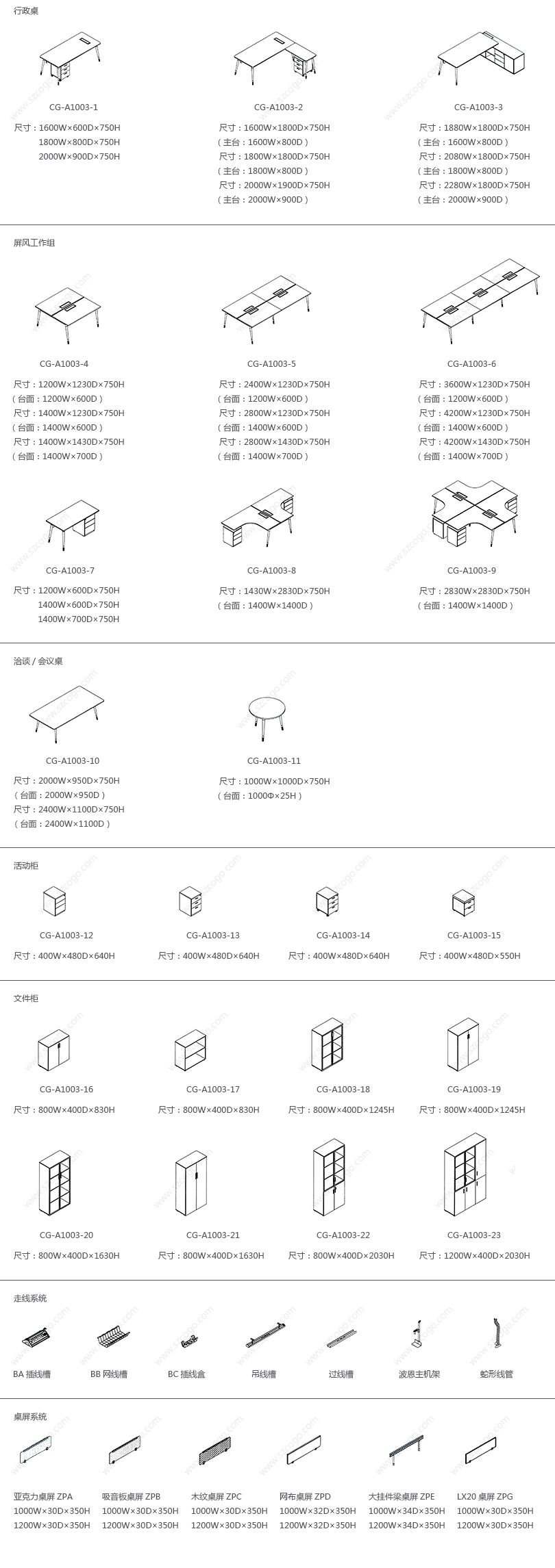 | 1、桌面吸音隔板,多种选择:板材、玻璃、亚克力、吸音板; | 2、整齐划一、人性方便的桌面铝合金过线系统; |