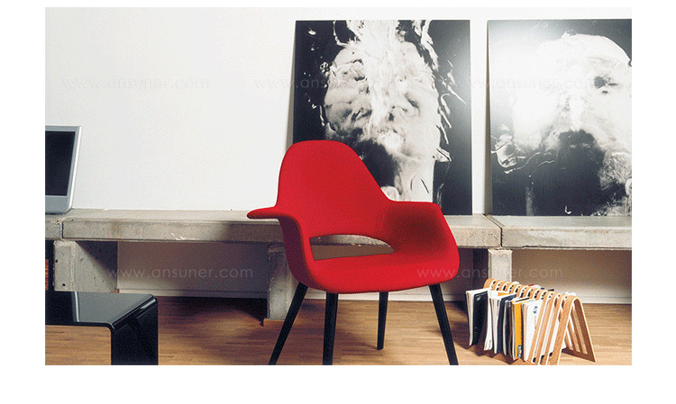 出自美国设计大师Charles Eames和芬兰设计师Eero Saarinen的作品,Organic Chair的诞生,是源自于1940年,纽约MoMa当代艺术馆所举办的有机有机设计竞赛。但是由于其独特的椅身曲线,及当时产量技术不足。Organic Chair一直到了1950年,才得以大量生产。Organic Chair是一张舒适的阅读椅,柔软的乘坐质感,贴心的扶手收边,加上榉木打造的椅脚造型,让他格外的具有收藏价值,在茶几边,书房中,搭配上优美的Organic Chair,悠然自得的午后时光,舒心惬意