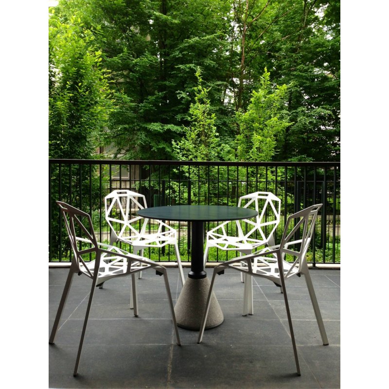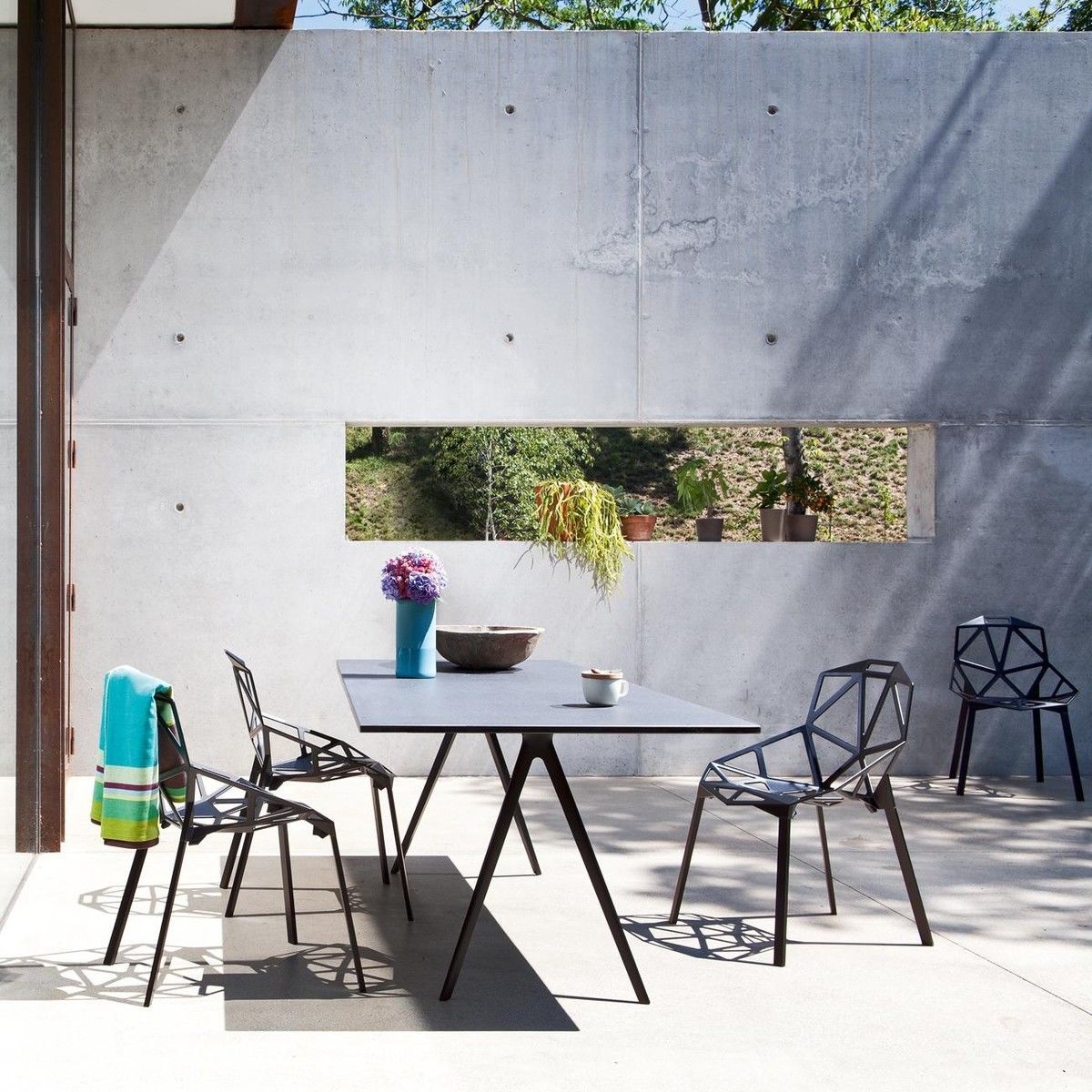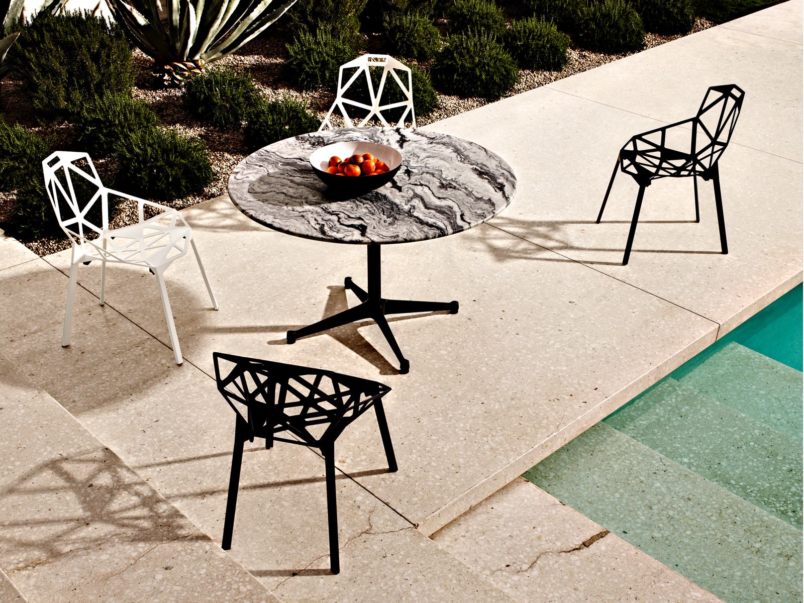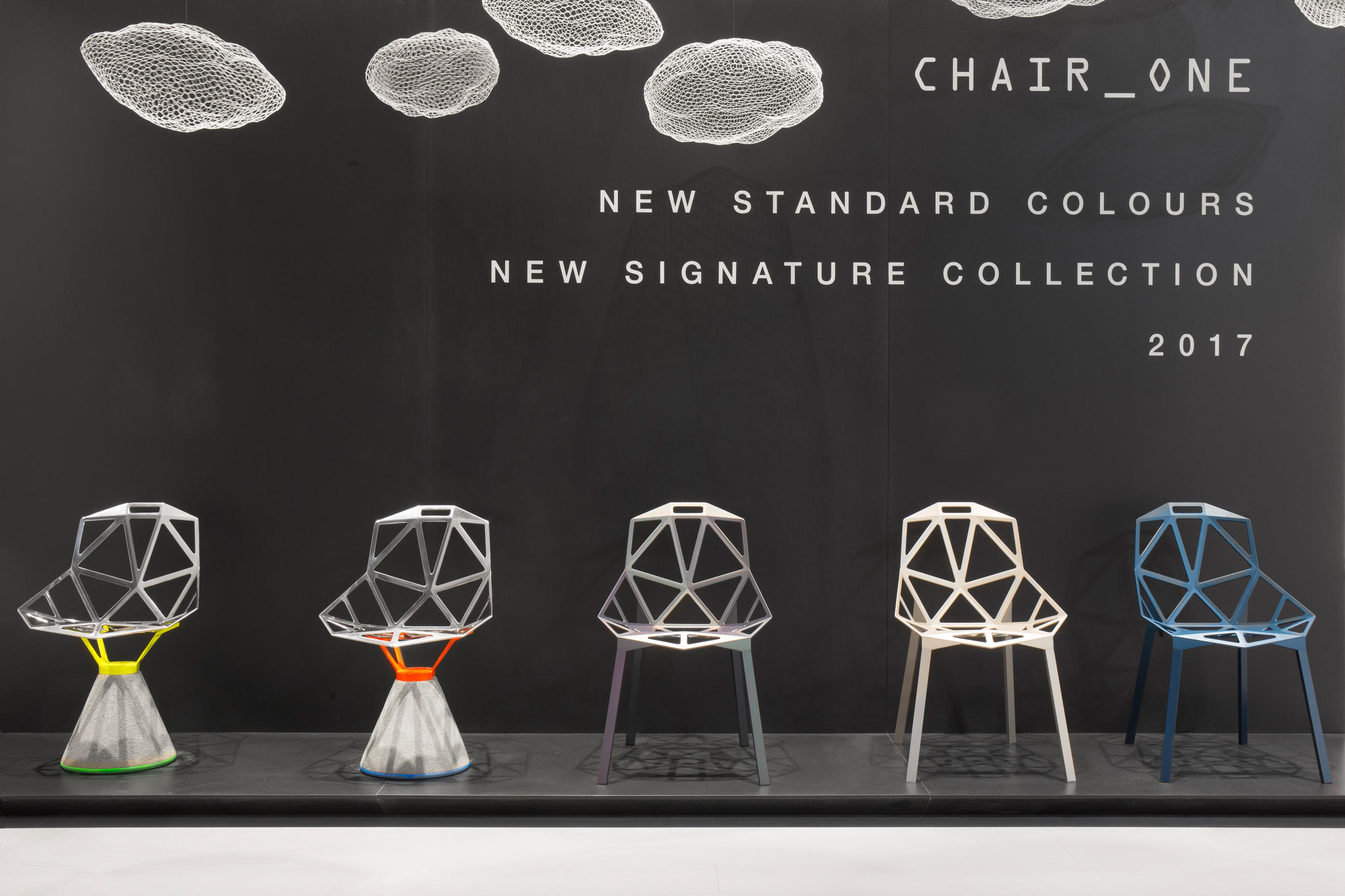 最受瞩目的德国设计师Konstantin Grcic 应邀为MAGIS 设计的Chair One(几何吧椅),是设计生涯中最具有标志的产品之一。办公椅体为模铸铝合金结构,经过氟化钛镀膜与塑料粉末涂布。椅子具有阻燃性、抗腐蚀性。适合室内及室外使用。以铝金属与钛金属制成的 Chair One,以多个平面以不同角度组合而成,建立起立体的外型。多个中空的三角型组合而成的座椅,不但令为用家带来强而有力的承托结构,而且还能在简单设计之中带出不一样的风格。这把椅子的惊人形象难免使人对它的舒适度产生疑问,但当你真正坐于其上,你会发现它实际上非常舒适,那些稀疏的网状结构能够极好地支撑不同体型的人体,后背上的把手也非常实用。当你知道Chair-One最初是被当作户外用椅而设计的,你会更加佩服Konstantin Grcic的缜密用心:极少的表面可以杜绝雨水,并且减少灰尘堆积,夸张的形态则令它能够在街道、建筑或自然的环境中拥有自己美学上的存在,而不是被环境所吞没。Konstantin Grcic花了三年时间设计Chair One,自2003年诞生以来,堪称Grcic精简主义风格的代表作。2006年,Chiar One为Konstantin Grcic赢得了德国政府的设计大奖。