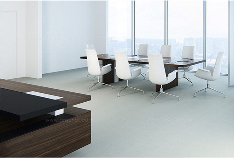 这是EOOS的新总部和会议项目设计团队对该产品强大的美学诉求,这个模型散发着成熟和信任的风格。无论是作为一个单独的会议桌,还是作为一个单独设计的大型会议系统,架构总是保持其清晰性。昂贵的材料创造了一种即时的视觉印象:海洋胡桃木单板和Corian。白色区域隐藏着集成线盒,衔接到各种能源和设备。
