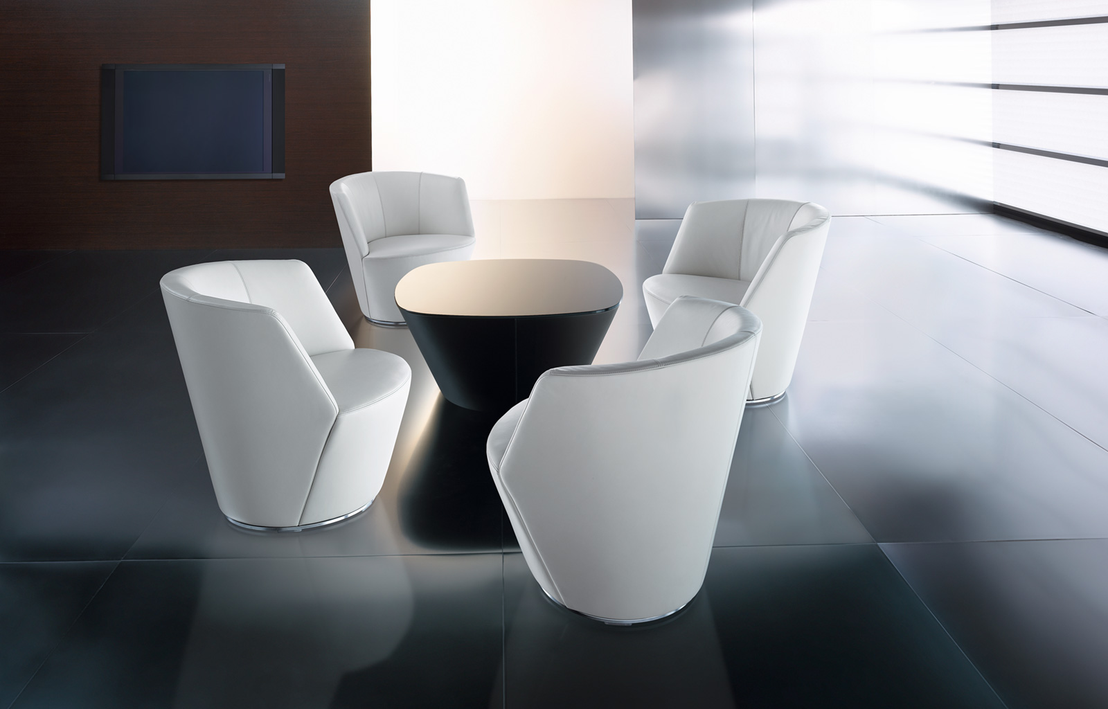 Ameo系列茶几与Ameo系列休闲椅相匹配。拥有黑色和透明两种颜色和不同尺寸的玻璃桌面,桌身用皮革包裹着。完美的与Ameo系列休闲椅搭配。
