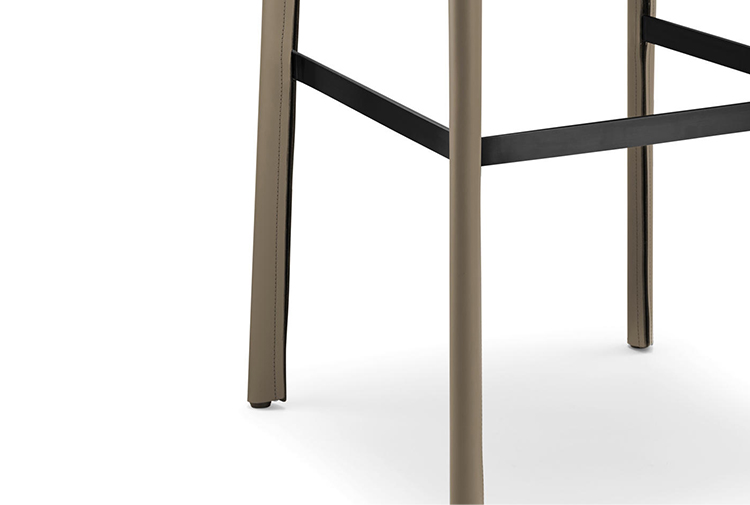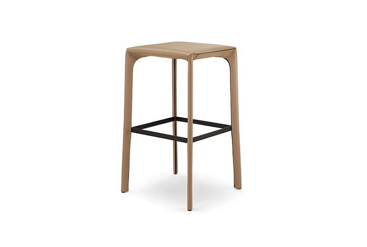 吧椅和标准椅都是鞍椅系列的延伸。它们遵循优雅的刚毅形状设计理念,将皮革片进行切割,边缘抛光和染色,再通过精密的缝合绘制。