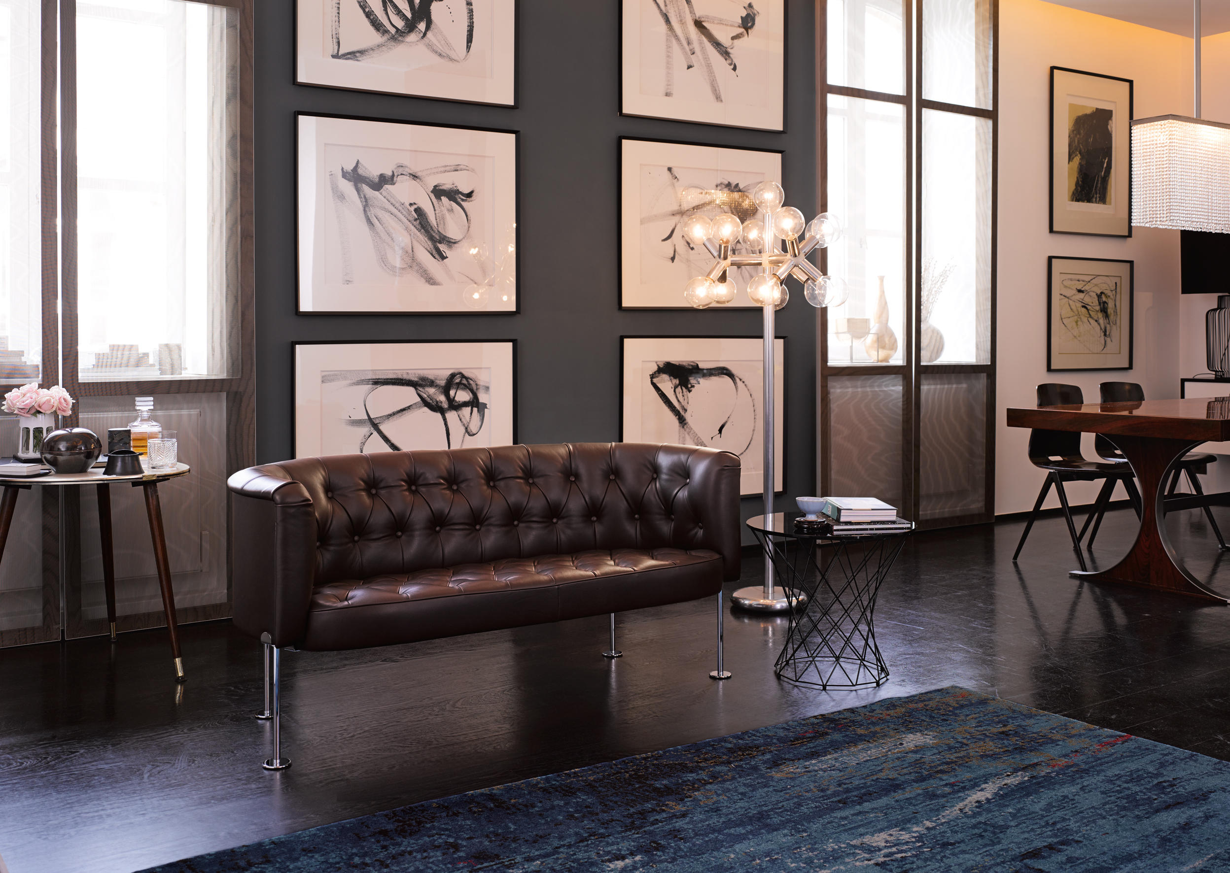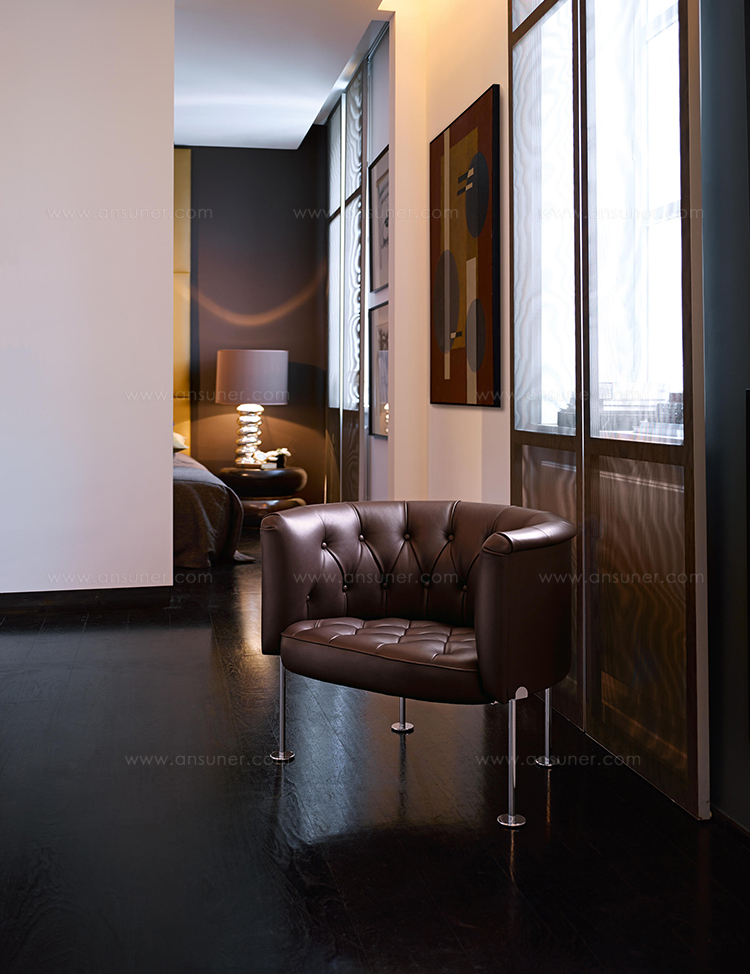 作为瑞士设计行收藏的一部分,Walter Knoll重新发行这款于1962年设计的经典的历史家具。与所有的切斯特菲尔德家具一样,独特的菱形图案结构的靠背和座位。传统的纽扣装饰服饰技术确保了这一点。一种巧妙地装饰体验标志。这是对包豪斯运动的致敬,反映在它精致的腿上。