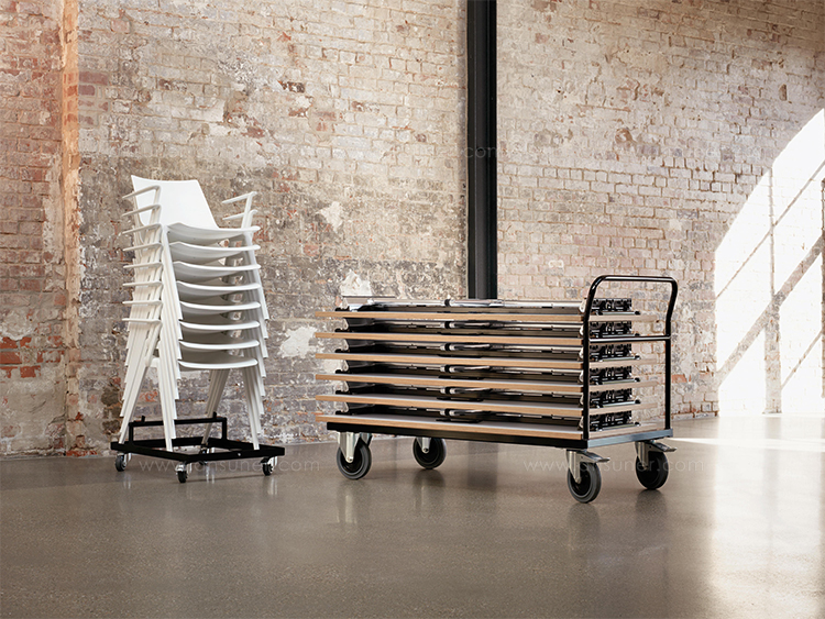折叠桌的设计是为了给储存空间提供灵活的解决方案。在处理储存方面上,其设计的品种和质量对设备管理成本的影响受到了用户的赞赏。这就是mAx迷人的地方。设计精巧的折叠桌可以被紧凑的堆放,而且只需要一只手就能进行折叠。时尚的T型脚的材料和工艺保证了桌子的坚固耐用。