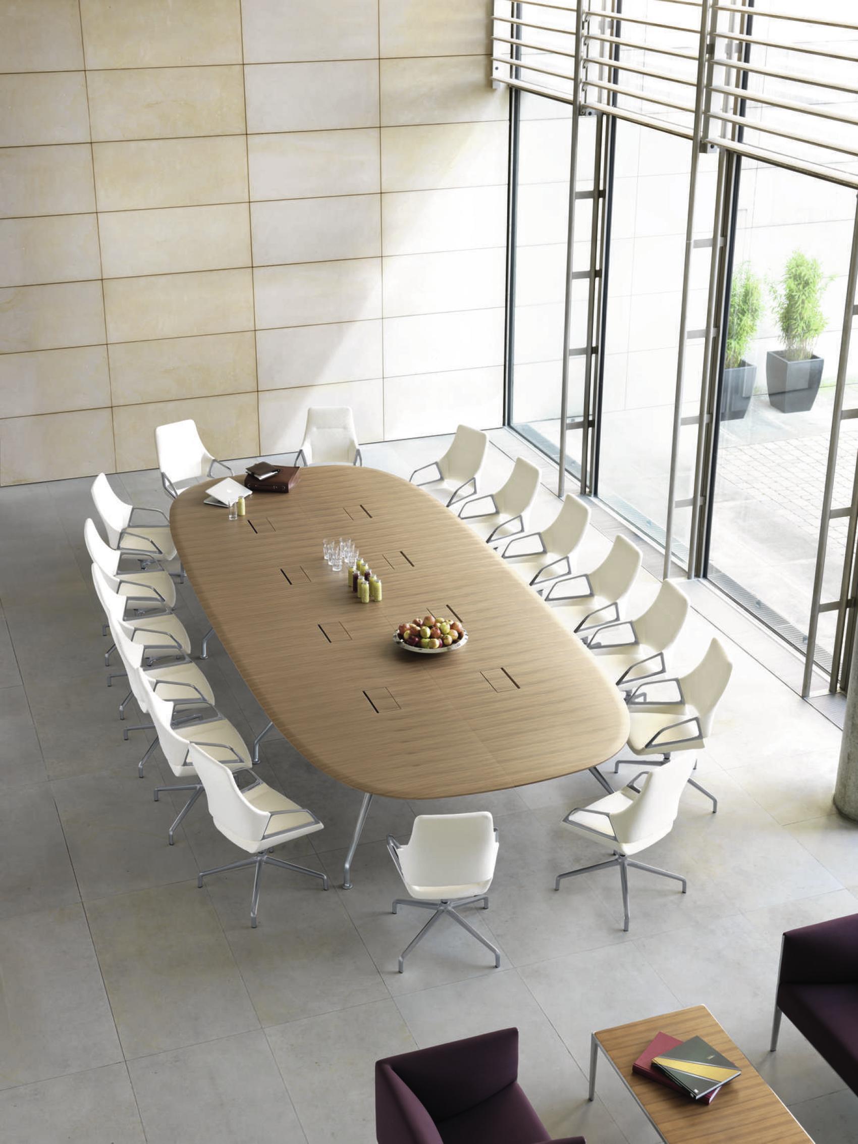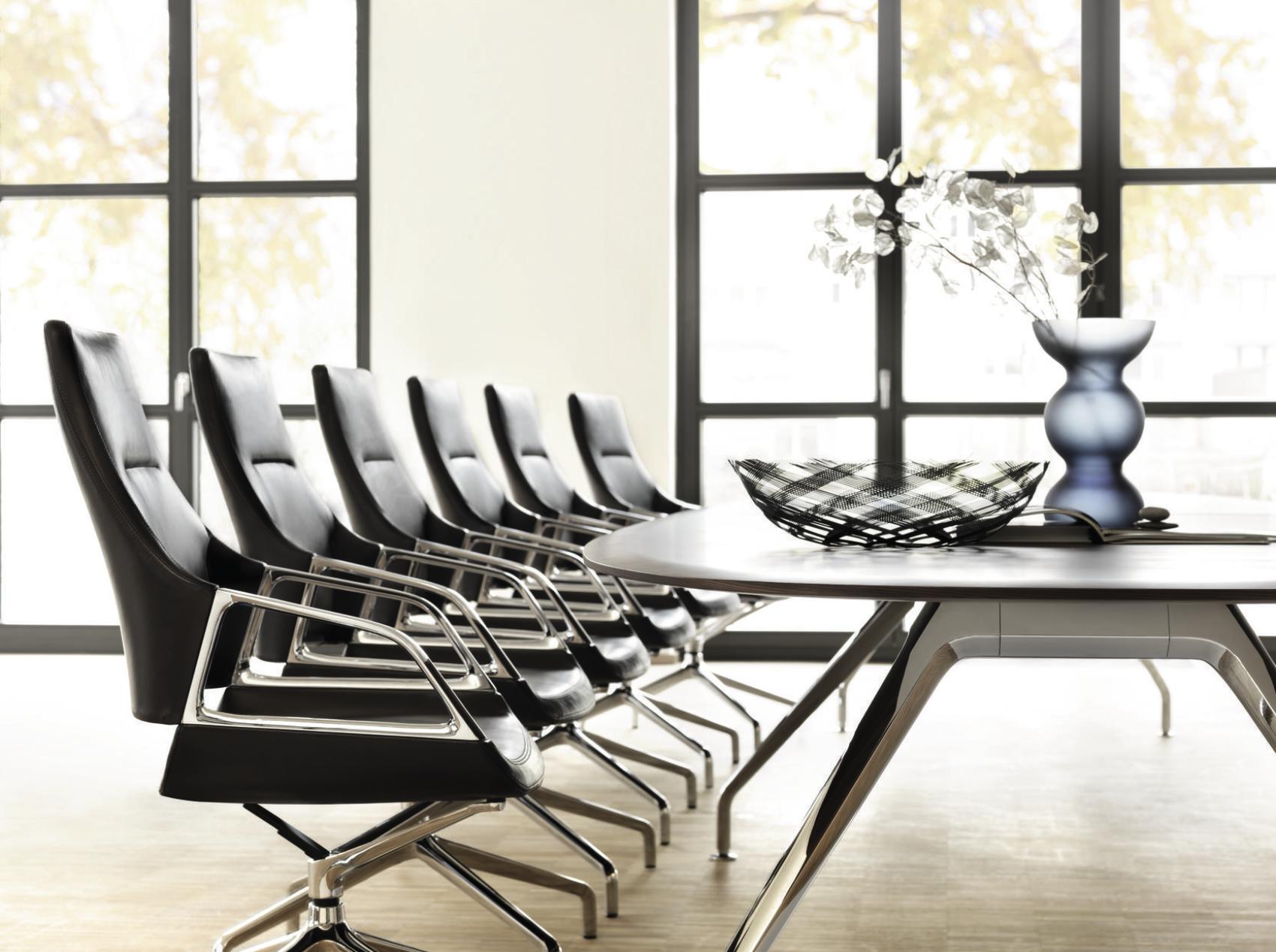 他的Graph反映了图表会议椅的主要设计特点。椅子的足部、扶手都可以在Graph会议桌上无缝反映出来。在桌子的框架上,铝的框架与倾斜的压铸铝腿和它们弯曲和扁平的外观相呼应。因此,在工作台框架上,灯线始终如一地出现,从而使框架具有无缝外观。巨大的跨度也给人留下了一种优雅的印象,引力似乎在那里几乎停滞了。这个ef fect是由不对称曲线的表边和表的圆角来增强的。