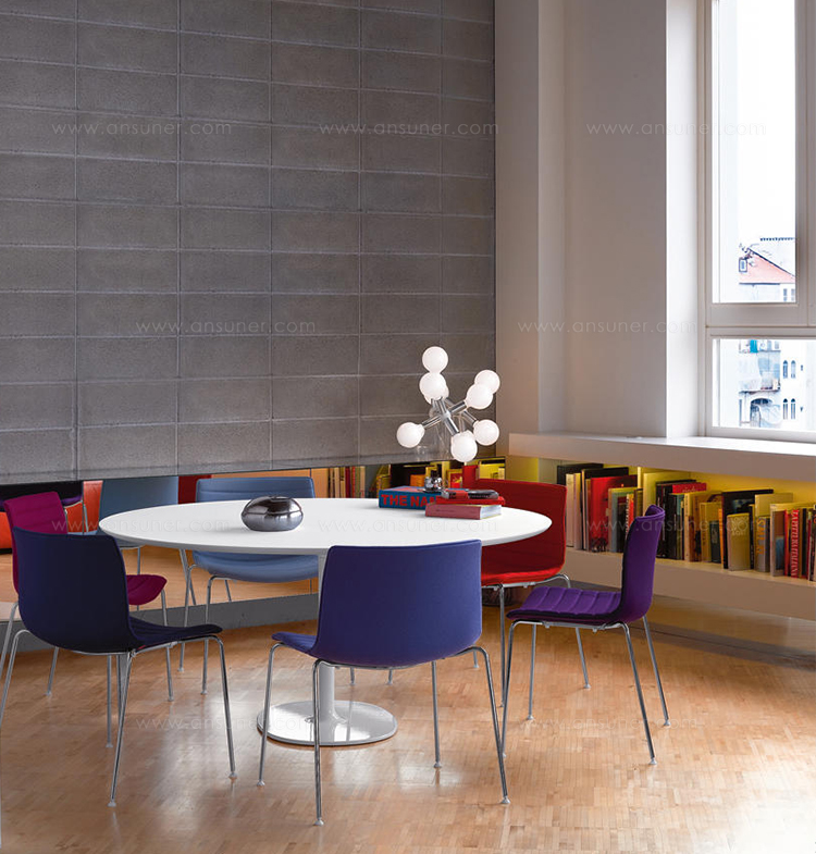 Catifa 46外壳和底座采用多种材料,颜色和饰面制成,适用于室内和室外的住宅和合同用途。外壳采用双弯曲胶合板,单色或双色聚丙烯制成,表面覆盖皮革或织物,或者采用软垫衬垫制成。底座采用镀铬钢,缎面不锈钢,铝或粉末涂层铝制,并提供以下基础配置:雪橇,四脚管,铝支架和五星。雪橇和四脚底座可堆叠,以便大规模使用和存放。桌面配件可供校园或礼堂使用。 Catifa 46也可作为凳子使用。
