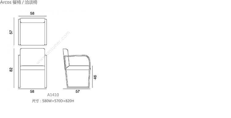 Arcos 餐椅/洽谈椅 系列尺寸/示意图