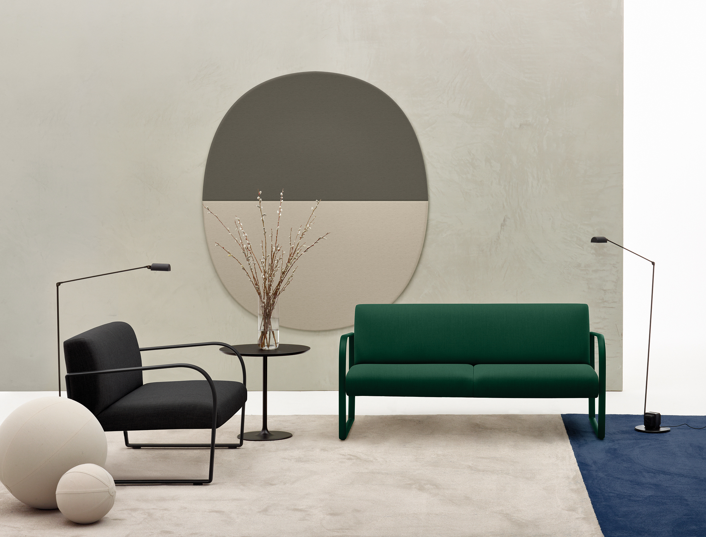 低桌,无烟煤粉涂层钢椭圆形底座和拉丝橡木贴面MDF椭圆形顶部,有天然,黑色和白色饰面(厚1,7厘米)。 高度:50厘米。