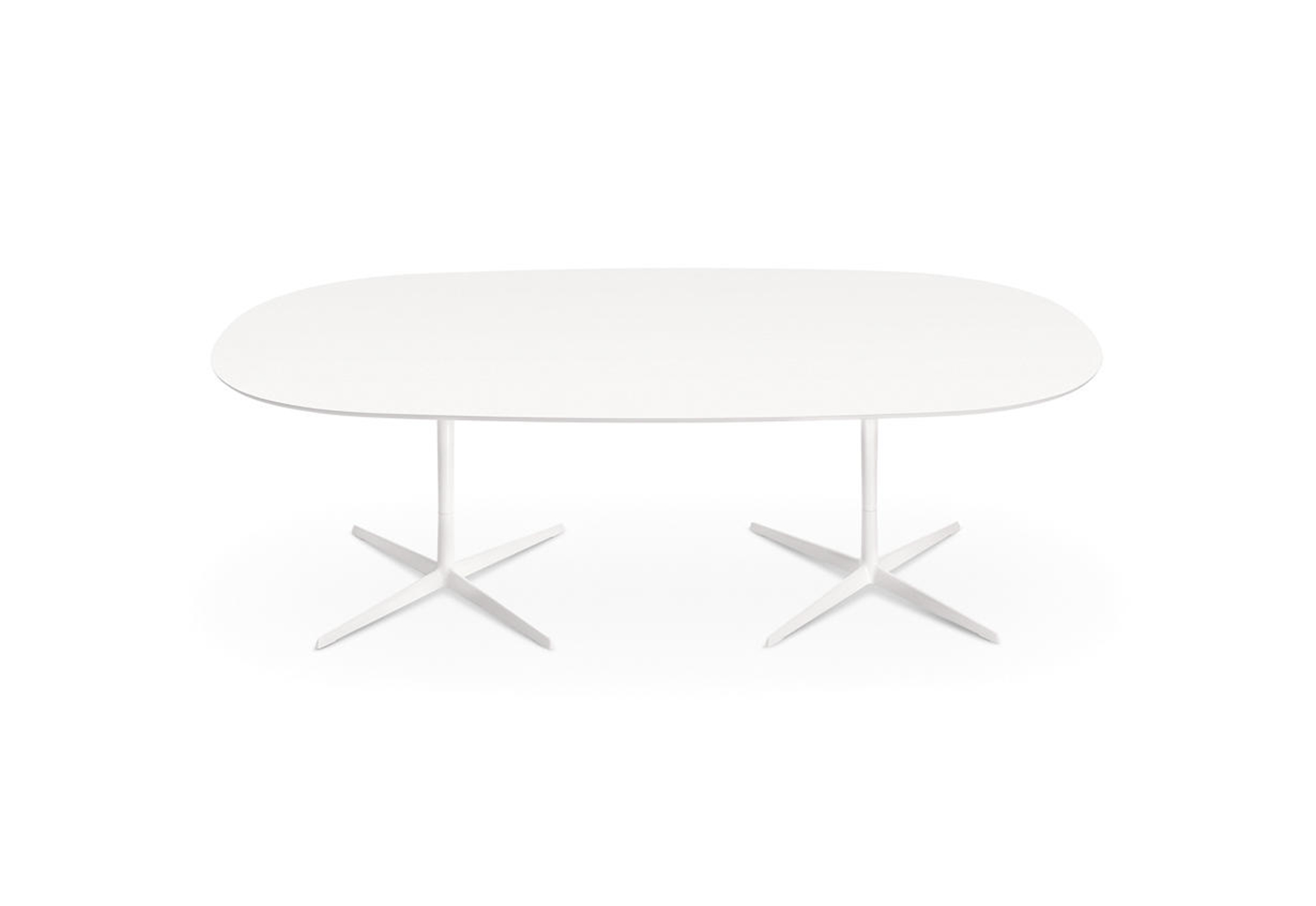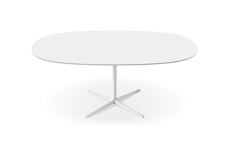 带粉末涂层铝制4向底座和顶部的桌子,白色压花MDF(厚2.5 cm)或层压Fenix(厚2.6 cm)。身高:74厘米。