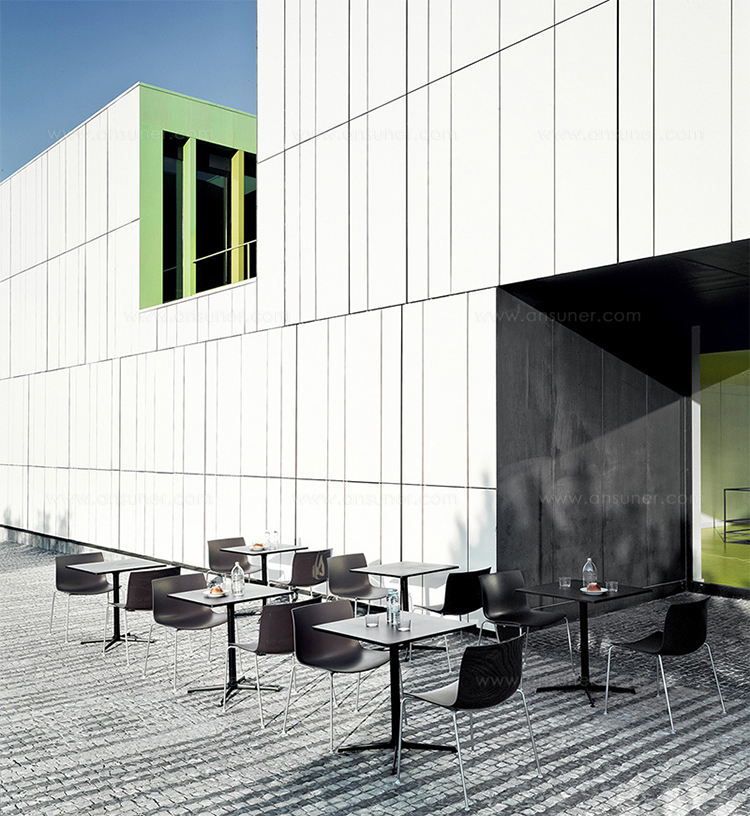 Ginger是一款优雅而多功能的桌子,具有简洁的线条和原始且极其坚固的框架。 它非常适合装饰室内和室外空间,如酒吧,咖啡馆或餐馆。 它有三种高度--50,74和105厘米 - 具有各种尺寸的圆形或方形聚丙烯顶部,以及抛光铝或涂白色或黑色的四星形底座。 所有型号均已获得环境产品声明(EPD)认证。