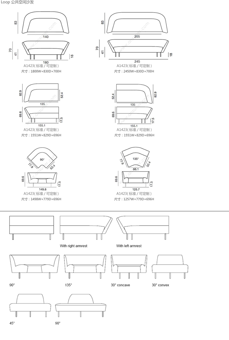 Loop 公共空间沙发 系列尺寸/示意图