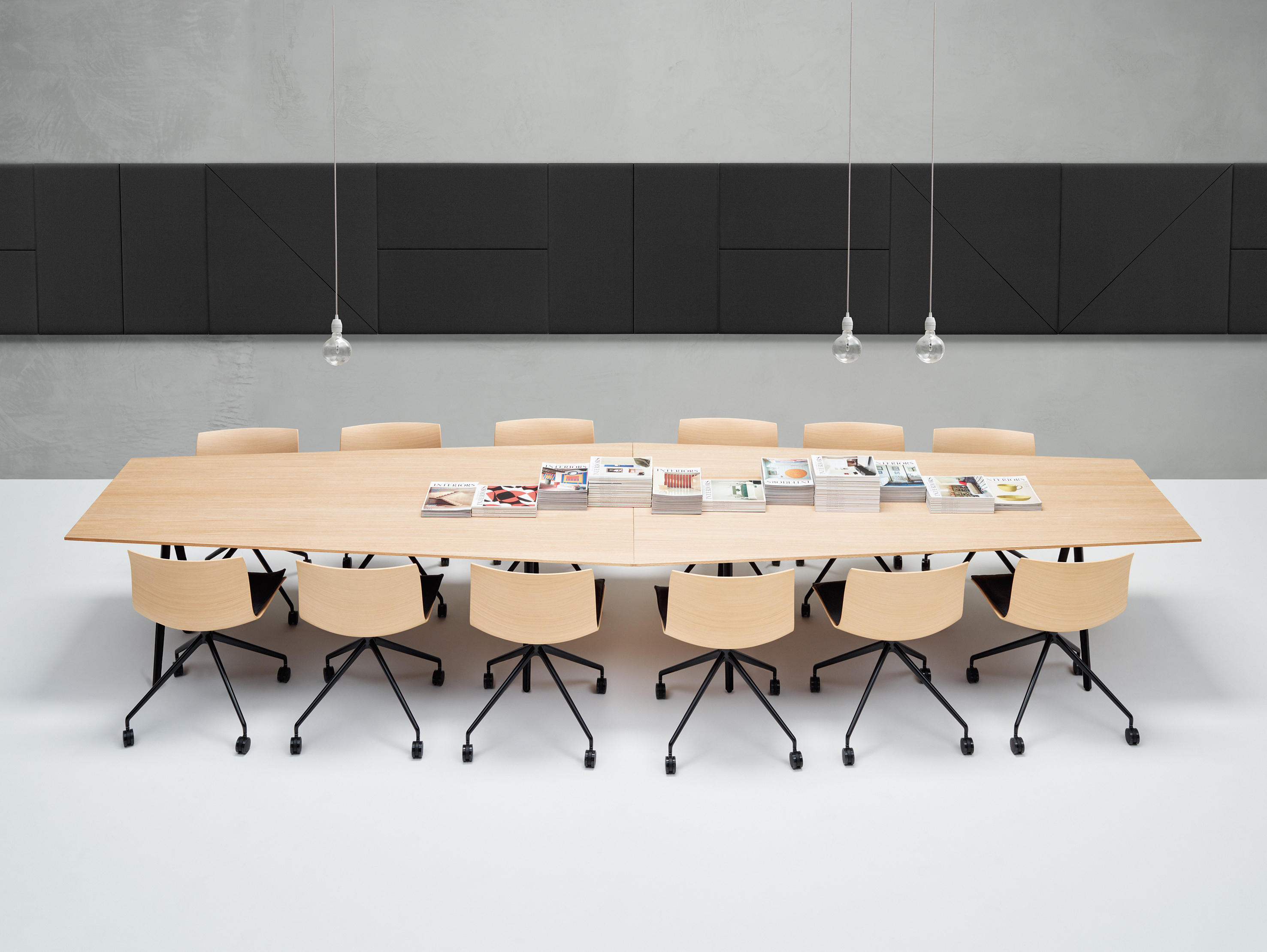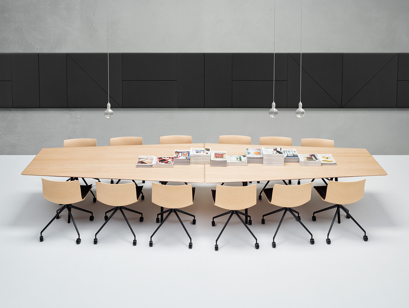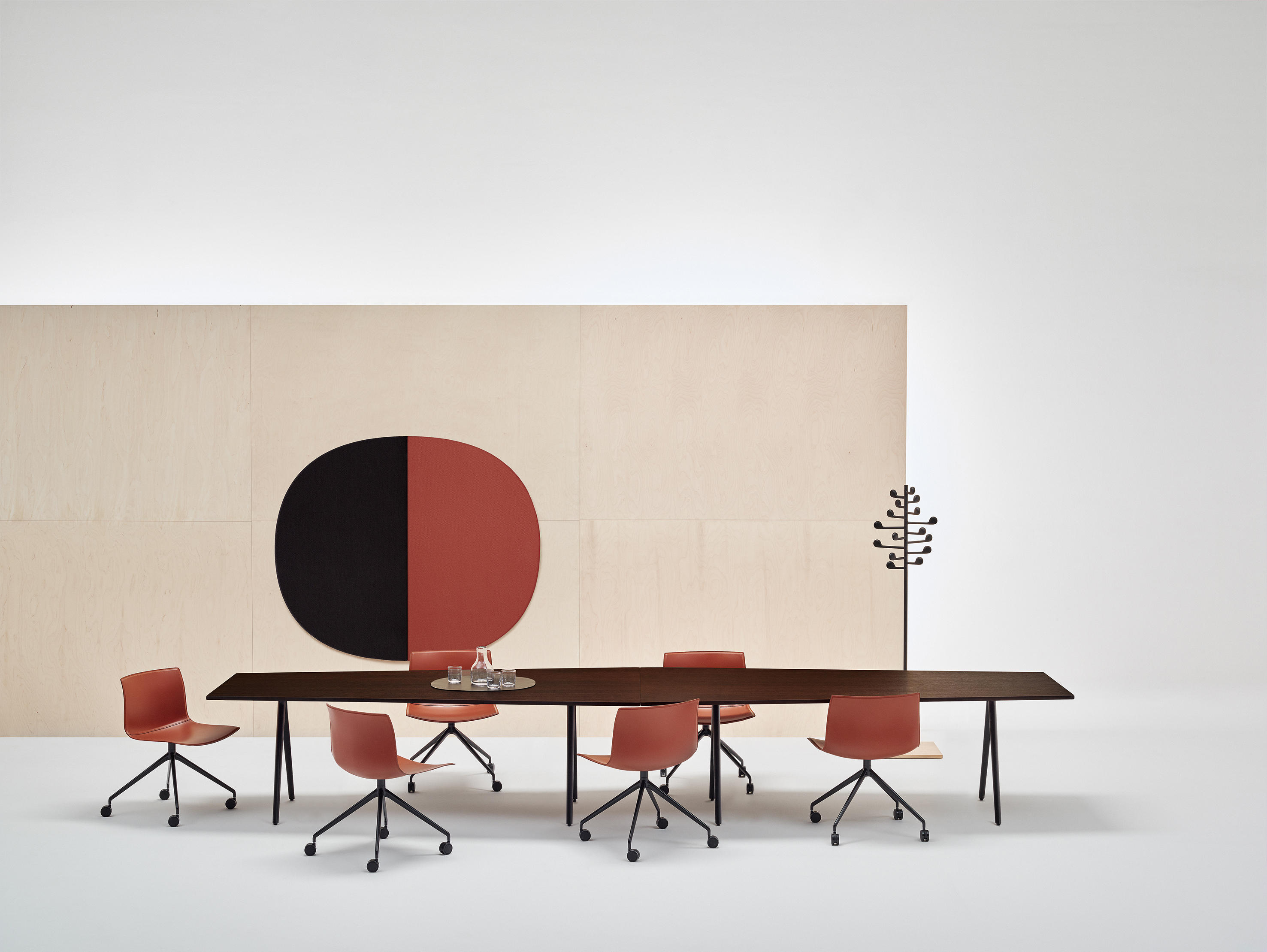 Meety系统可广泛定制,具有桌面形状选项,以及从层压MDF到FENIXNTM®,从木材到玻璃的各种材料。圆形(直径120厘米),正方形(120X120厘米)和矩形形状(从70X140厘米开始)被设想用于大型座椅环境,而柔软和流动的肥皂形状具有独特的存在感和吸引力。创建梯形桌面形状是为了响应协作工作环境,并且可以组合成不同的配置以在工作场所创建私人空间或开放性。