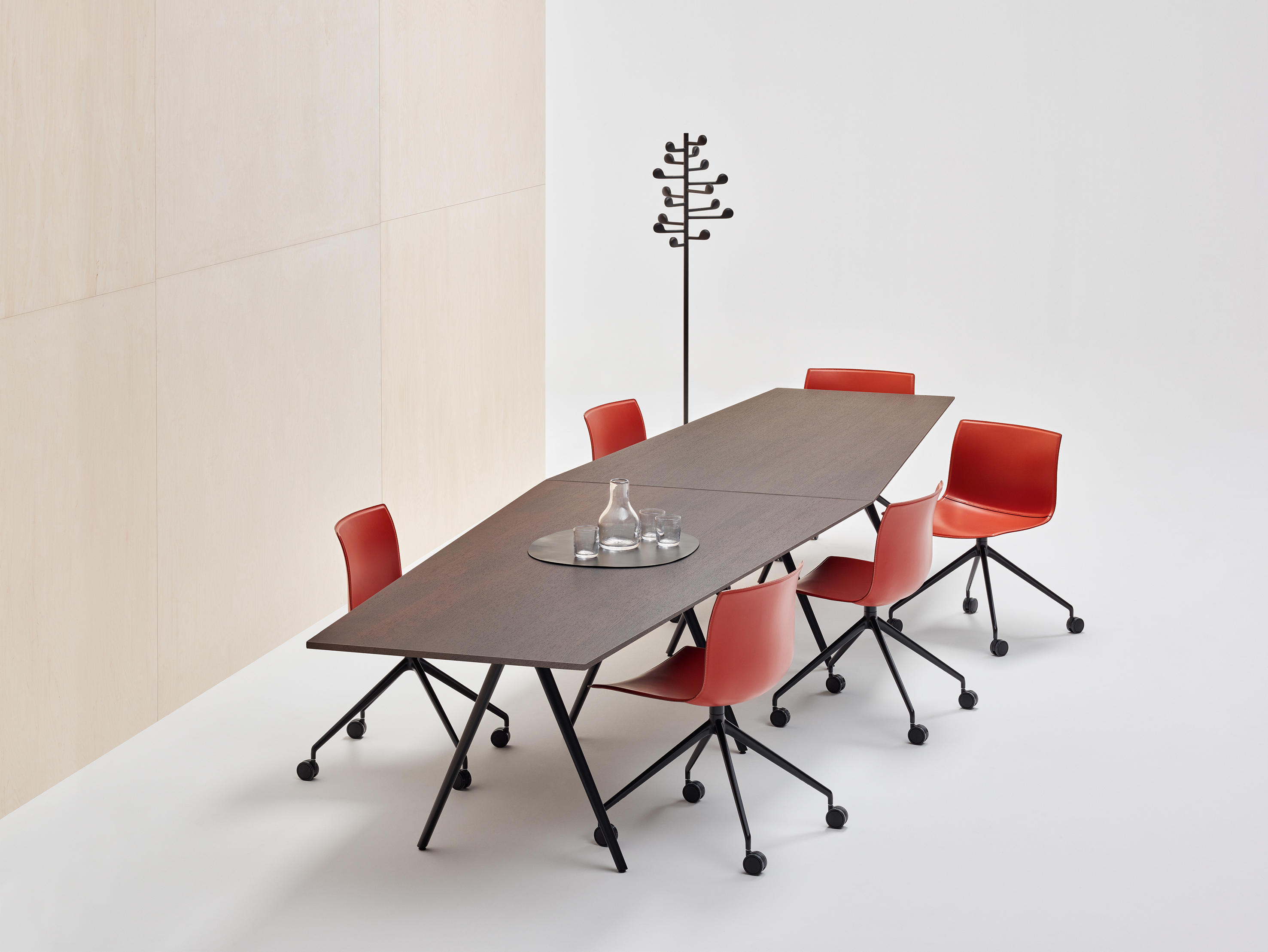 Meety由Lievore Altherr Molina设计,以表格形式模仿Catifa的适应性系统。灵感来自桥梁的建筑结构 - 强大而轻盈 - Meety的铝制支腿形成坚固的结构,顶部看起来漂浮或悬停。 Meety采用适应性强且动态的桌面系统,可实现最佳定制,Meety通过其铸铝支腿保留其独特的特性,可无缝集成到多种桌面选项中:尺寸,比例和材料。多样化的自定义功能可以为任何环境(家庭,工作和生活)提供量身定制的优雅系统。