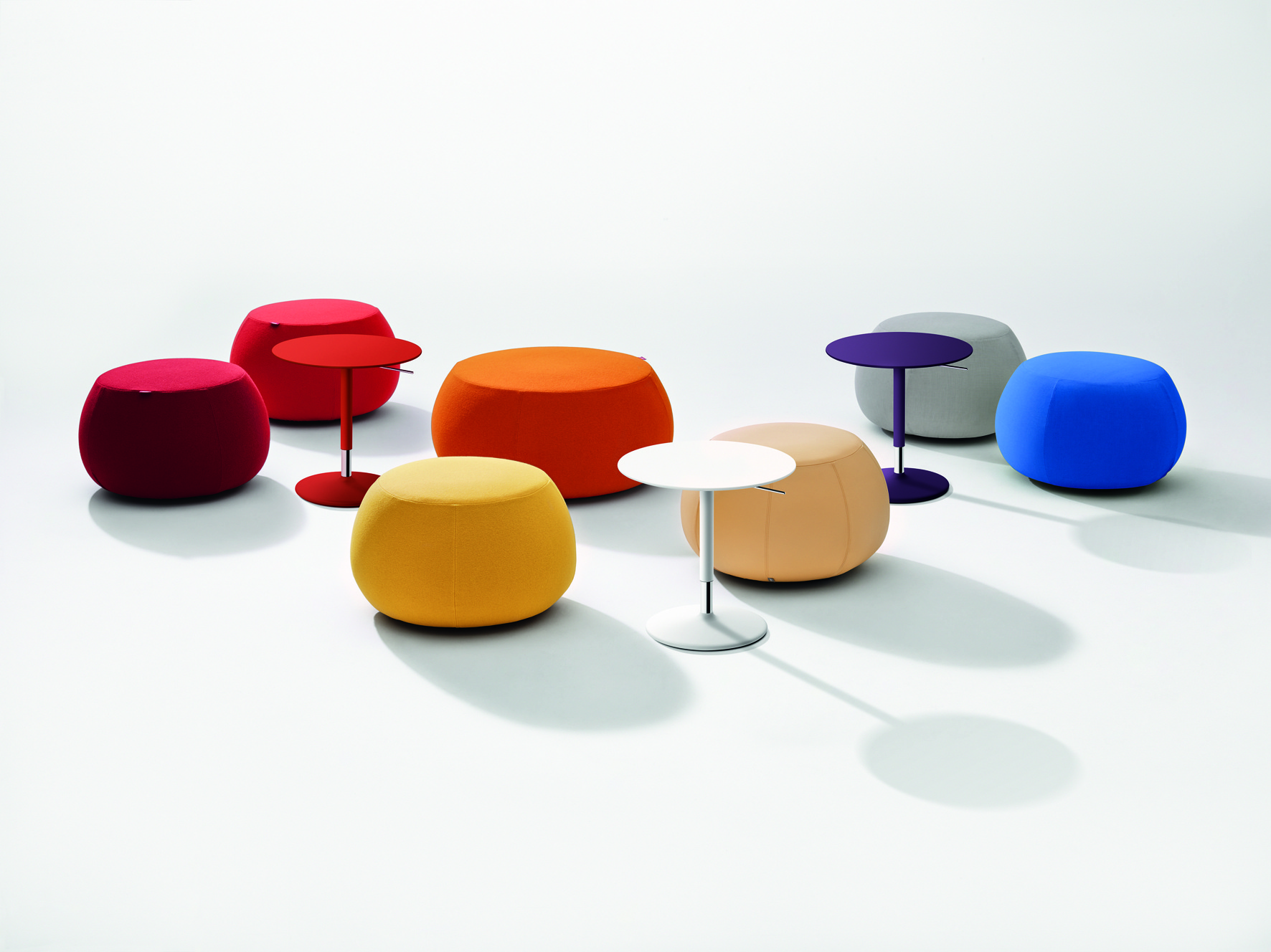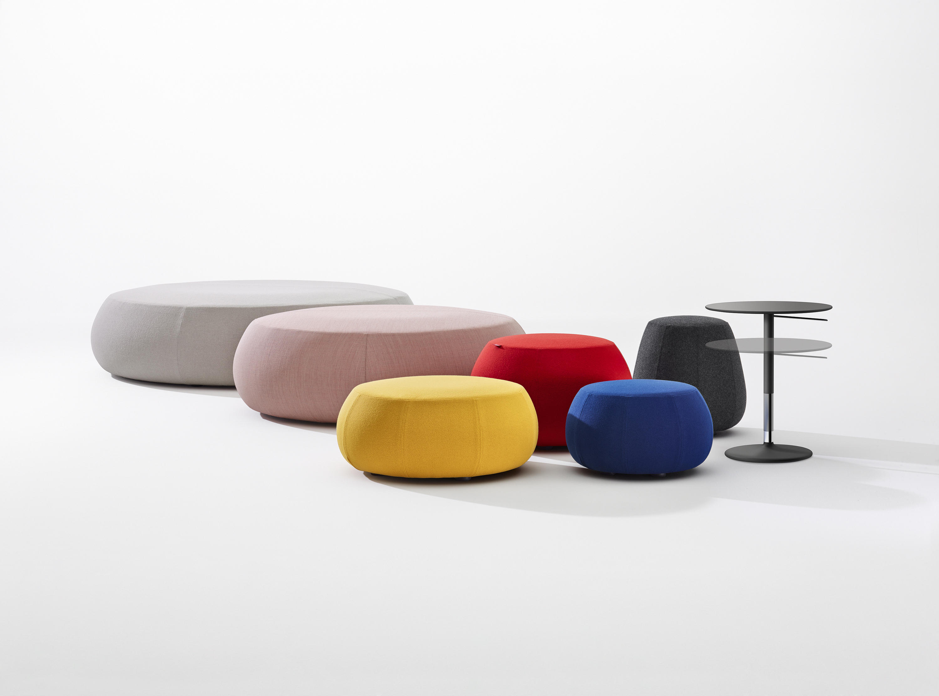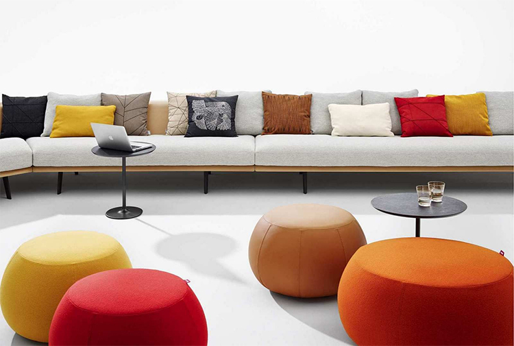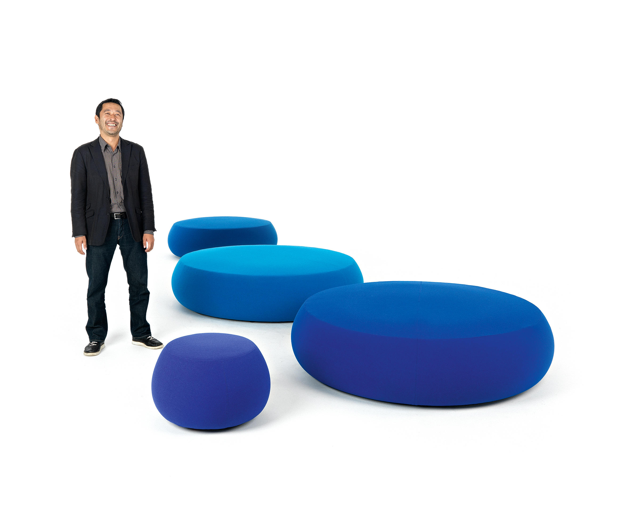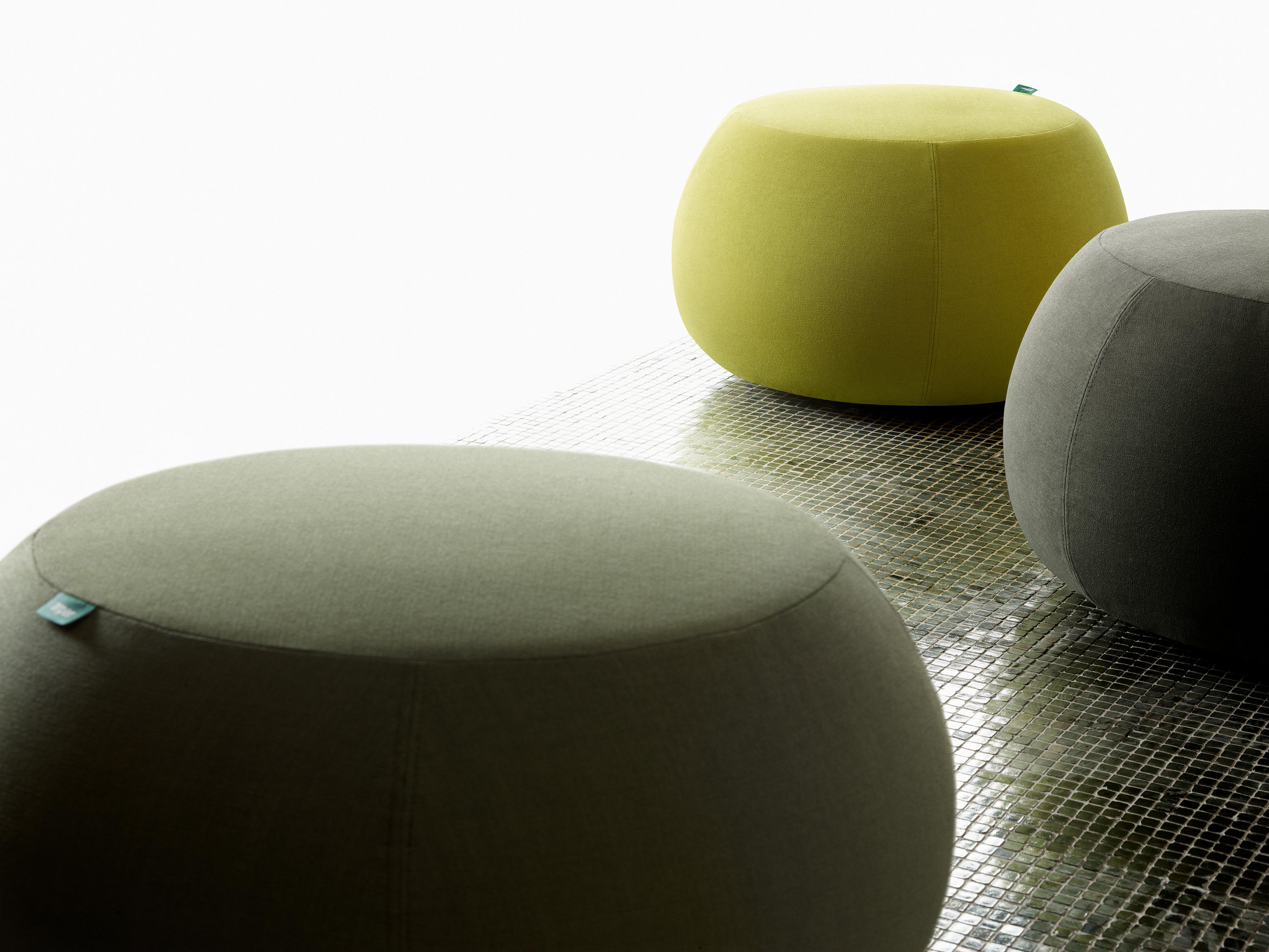 Pix Pouf系列家庭垫脚软凳由日本设计师Ichiro Iwasaki、设计的。形象的轮廓、柔和的色彩运用,饱满的外观,防霉实木内框架或玻璃钢内胆、高密度海绵、进口布艺或皮革(颜色可选)。可适合于不同大小的空间,如会议室、 会议活动的多功能厅,亦或是教室和放松的休闲区,还有家庭使用。这系列有四种尺寸大小 (67,87,137 和 177 厘米直径) 。无论室内外都非常合适,让劳累一天的双脚得到无限的放松。