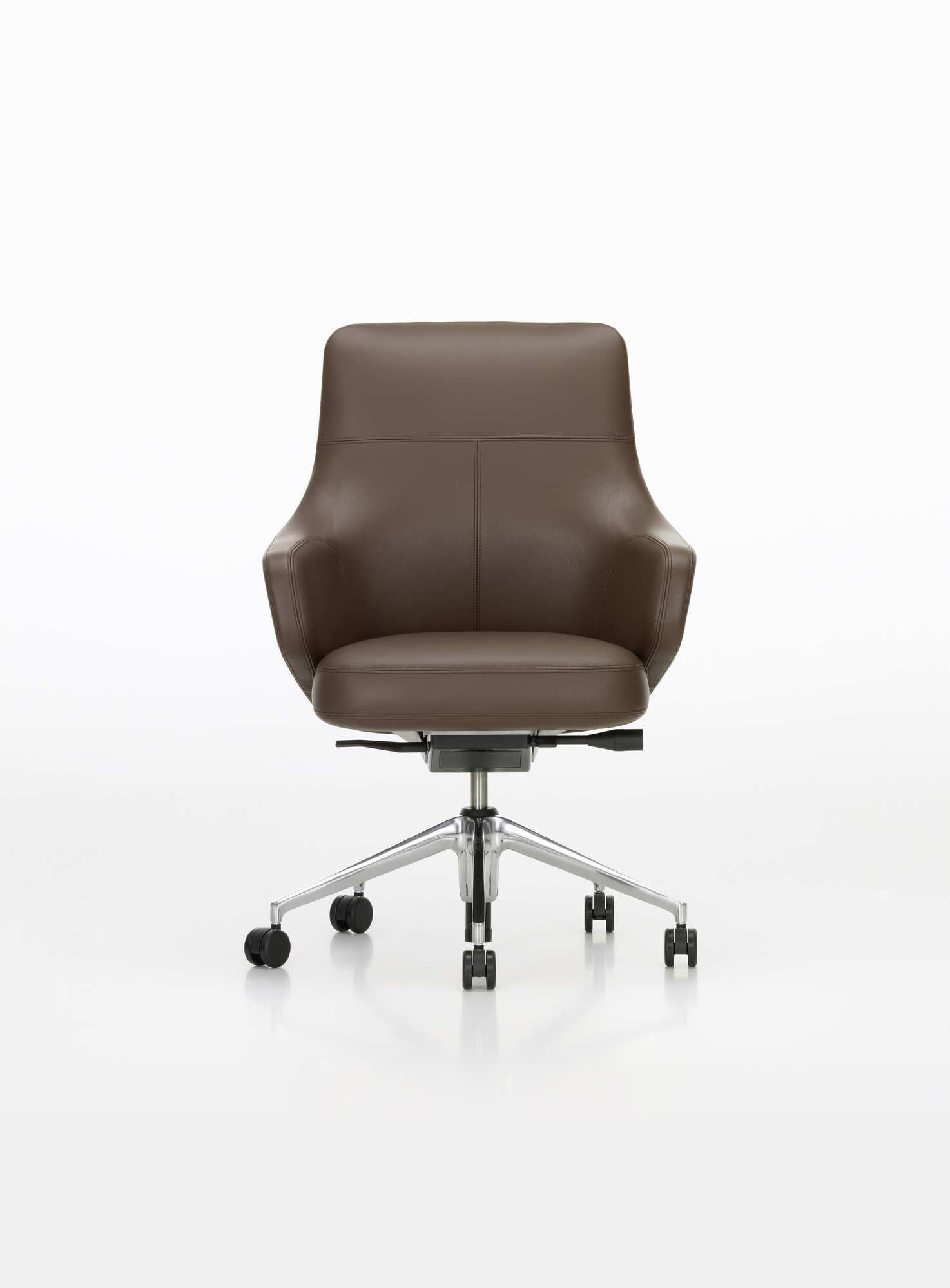 Grand Executive椅子结合了Grand Repos休闲椅的优雅,这是由Antonio Citterio为Vitra Home Collection设计的,具有现代办公椅的功能。 Grand Executive椅子的尊贵光环与时尚美感相得益彰。采用优质皮革制成,柔软的软垫内饰提供极致的舒适感。装饰性接缝凸显了椅子的手工细节,并勾勒出其体积结构。 FlowMotion机制可以适应个人用户,以确保每个坐姿的同步舒适度。 Grand Executive Highback模型配有可调节颈垫。