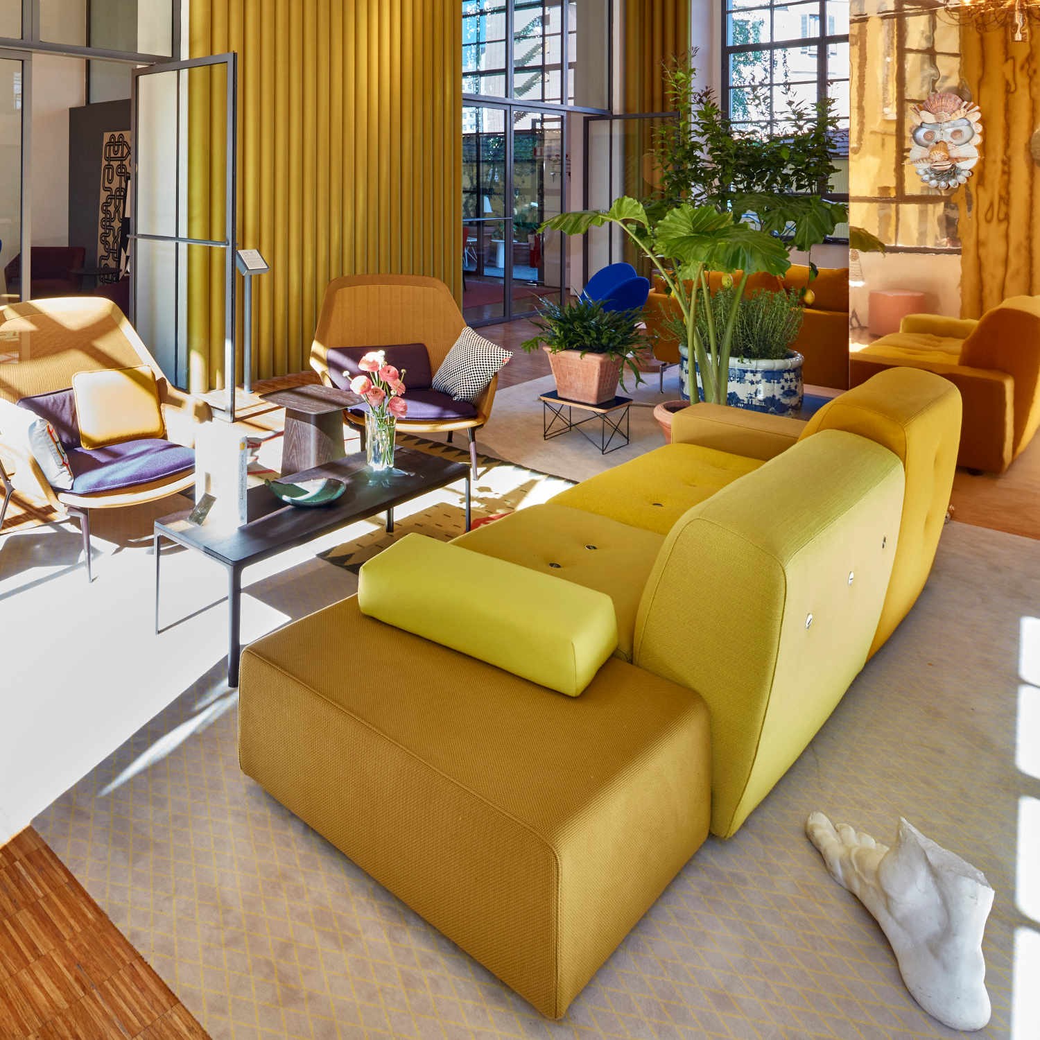 Hella Jongerius的Polder沙发在任何内饰中都创造了一个焦点:它的不对称形状和各种面料和颜色的靠垫赋予它独特的标志性外观。
