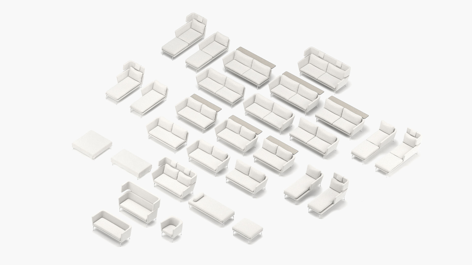 an elegant, timeless sofa system from Vitra and Antonio Citterio that is at once lightweight and technical. The precise geometry and soft padding of the body seem to float above the sleek, aluminum legs echoing classic, mid-century American design. Featuring individual components that can be freely combined, Suita adapts to suit all kinds of design visions, individual styles and environments.