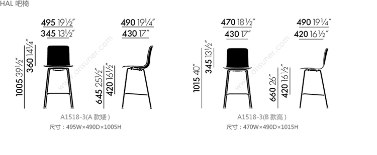 HAL 吧椅 系列尺寸/示意图