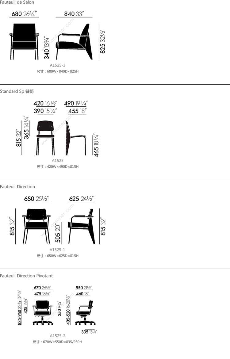 Fauteuil de Salon 系列尺寸/示意图