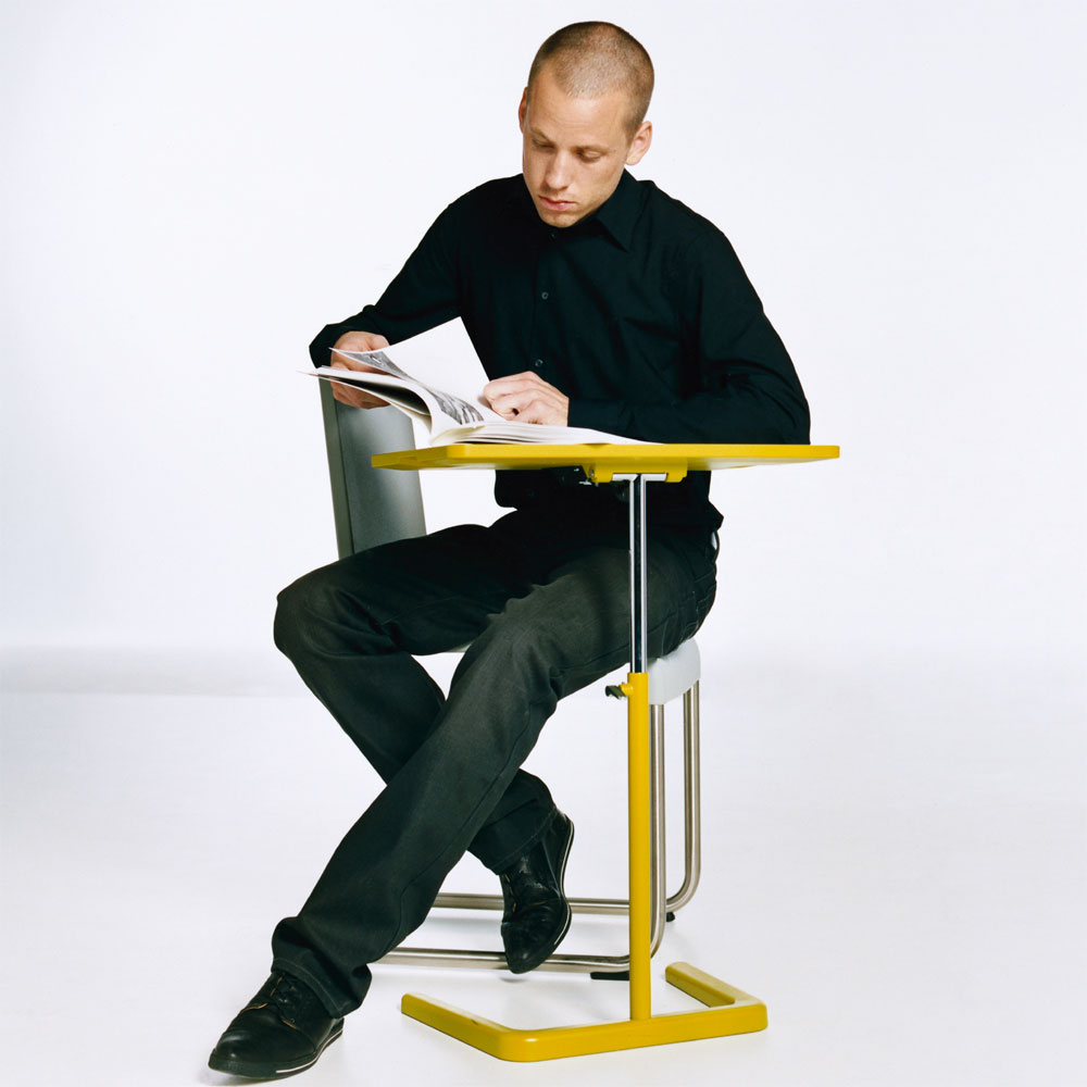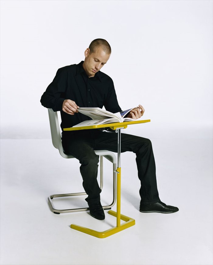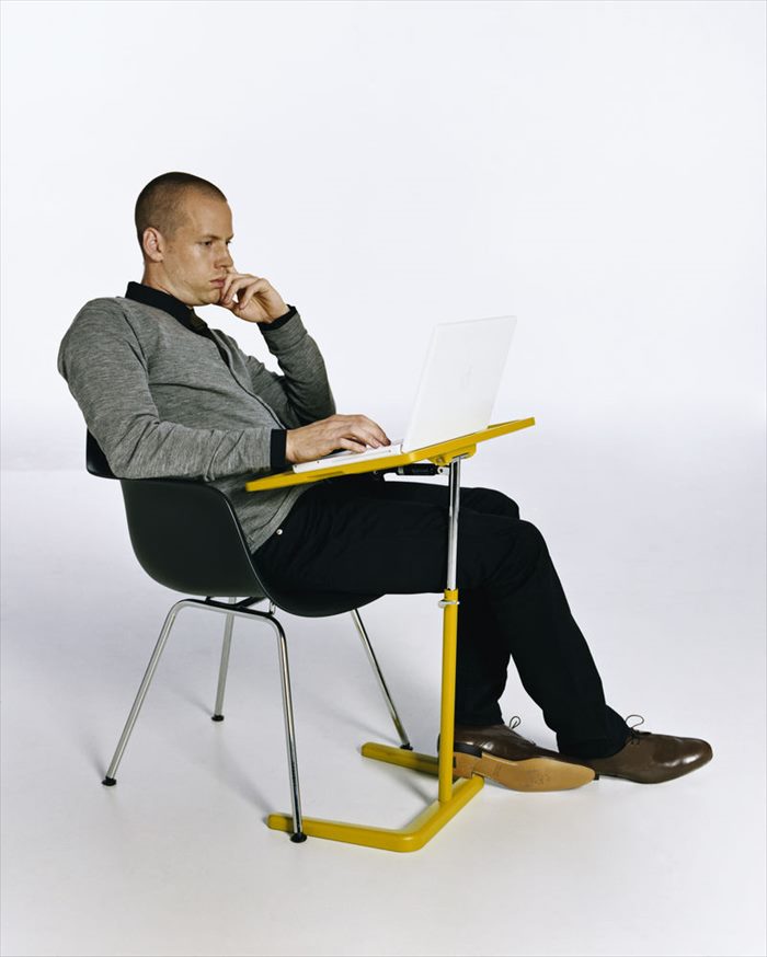 由于技术创新,现在几乎可以在任何地方使用笔记本电脑 - 但通常缺乏合适的家具。 NesTable是在家中沙发或扶手椅上工作的理想解决方案:托盘平台的高度和角度可完全调节,底座的形状允许用户在大多数类型的座位附近绘制它。