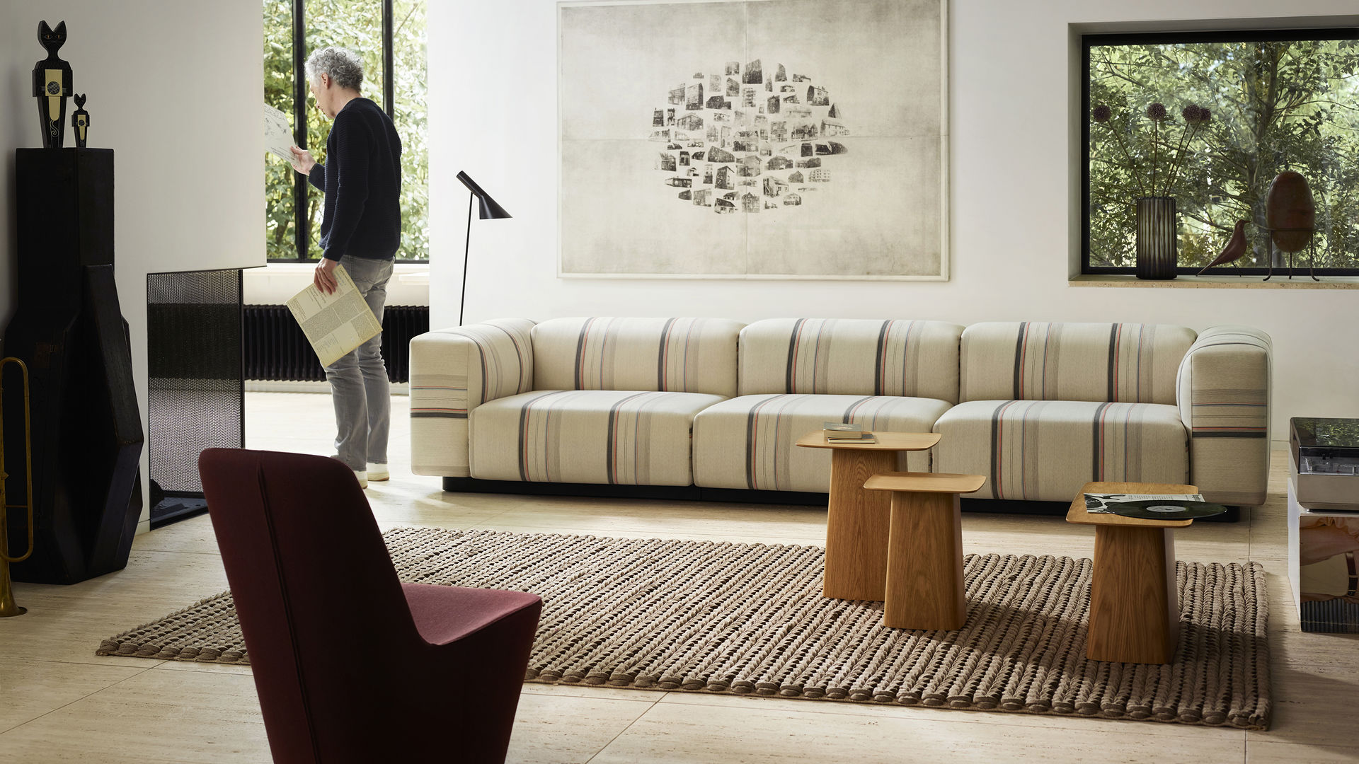 Ronan和Erwan Bouroullec的木制侧桌的细长顶部有一个轻微弯曲的唇部,使它们看起来优雅,几乎是日本风格。 轻便的偶尔桌子有三种尺寸,天然橡木,深色橡木或胡桃木贴面。