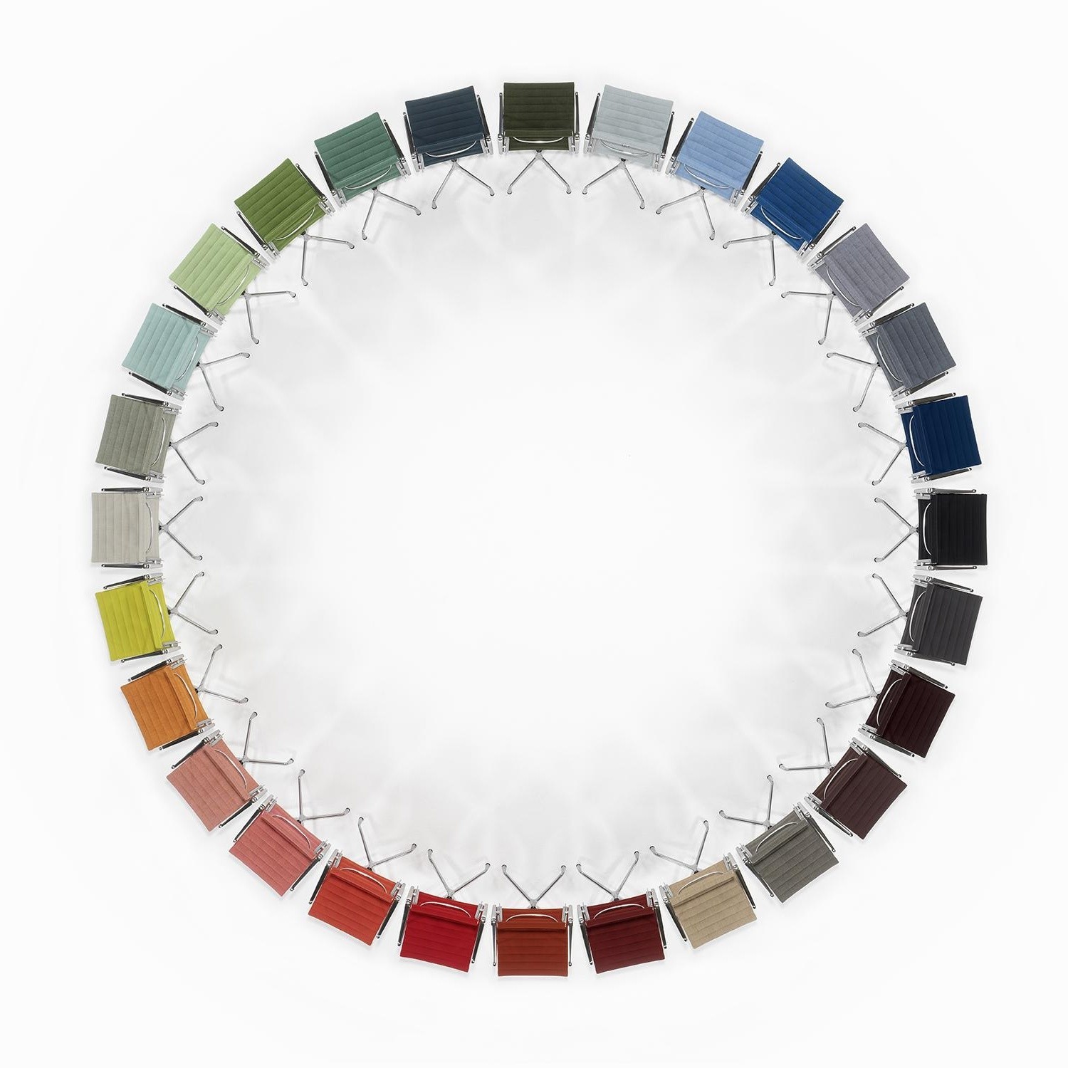 Charles和Ray Eames的铝椅EA 101,EA 103和EA 104非常适合与桌子组合使用:与铝组的其他型号相比,它们更轻,更高,更窄。 由于室内装潢具有多种柔和鲜艳的色彩,因此很容易找到适合任何餐厅的完美椅子。 这三种型号的不同之处在于基座的类型 - 固定或旋转 - 以及是否存在臂。