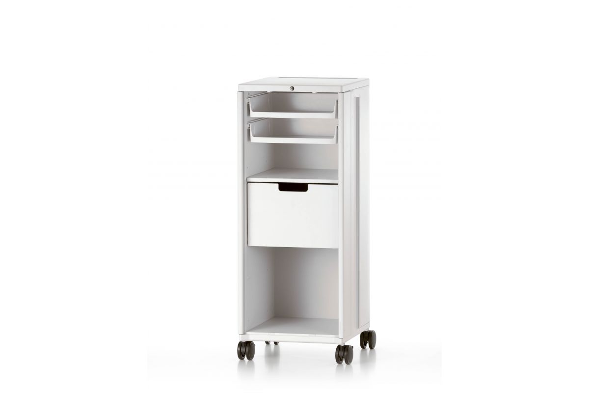 飞机手推车激发了建筑师和设计师Christoph Ingenhoven的灵感,开发出带Vitra的移动存储家具Caddy。 由粉末涂层钢板制成,Caddy坚固耐用,其各种家具选择使其成为办公室的实用伴侣:它还可以配置为复杂的电气化站立工作场所,作为演示投影仪的基础或作为餐饮用途的帮手。