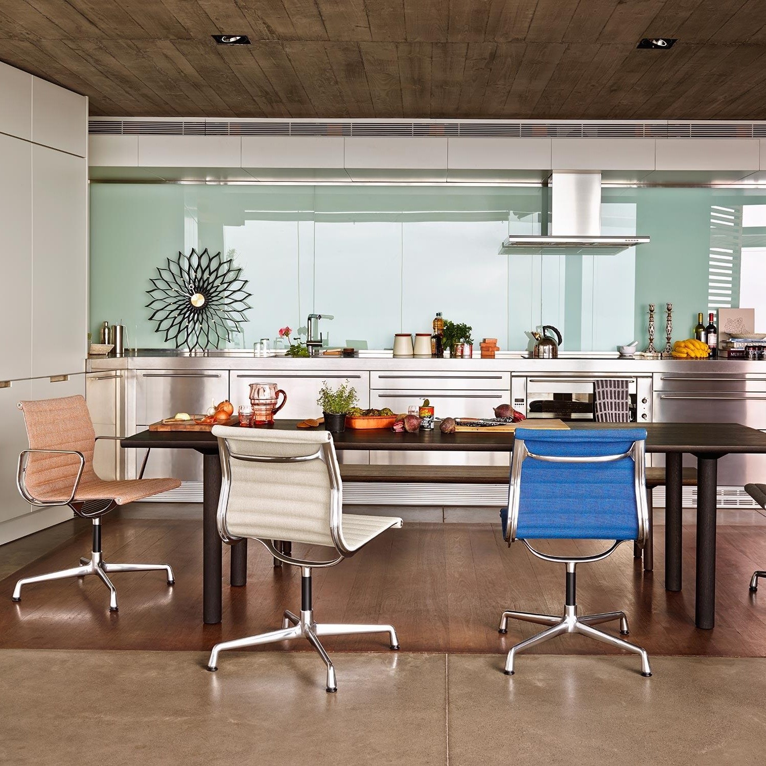 信仰进步和日益增长的经济繁荣是1950年左右美国生活方式的核心方面。一切似乎都有可能,人们努力做到“现代”。 为了将现代设计融入美国家庭,乔治·尼尔森构思了各种日常用品:灯具,钟表和其他家居饰品。 直到20世纪70年代,尼尔森办公室为家庭创造了许多不同的物品,包括泡泡灯和球钟,它们成为了本世纪中期现代设计的象征。