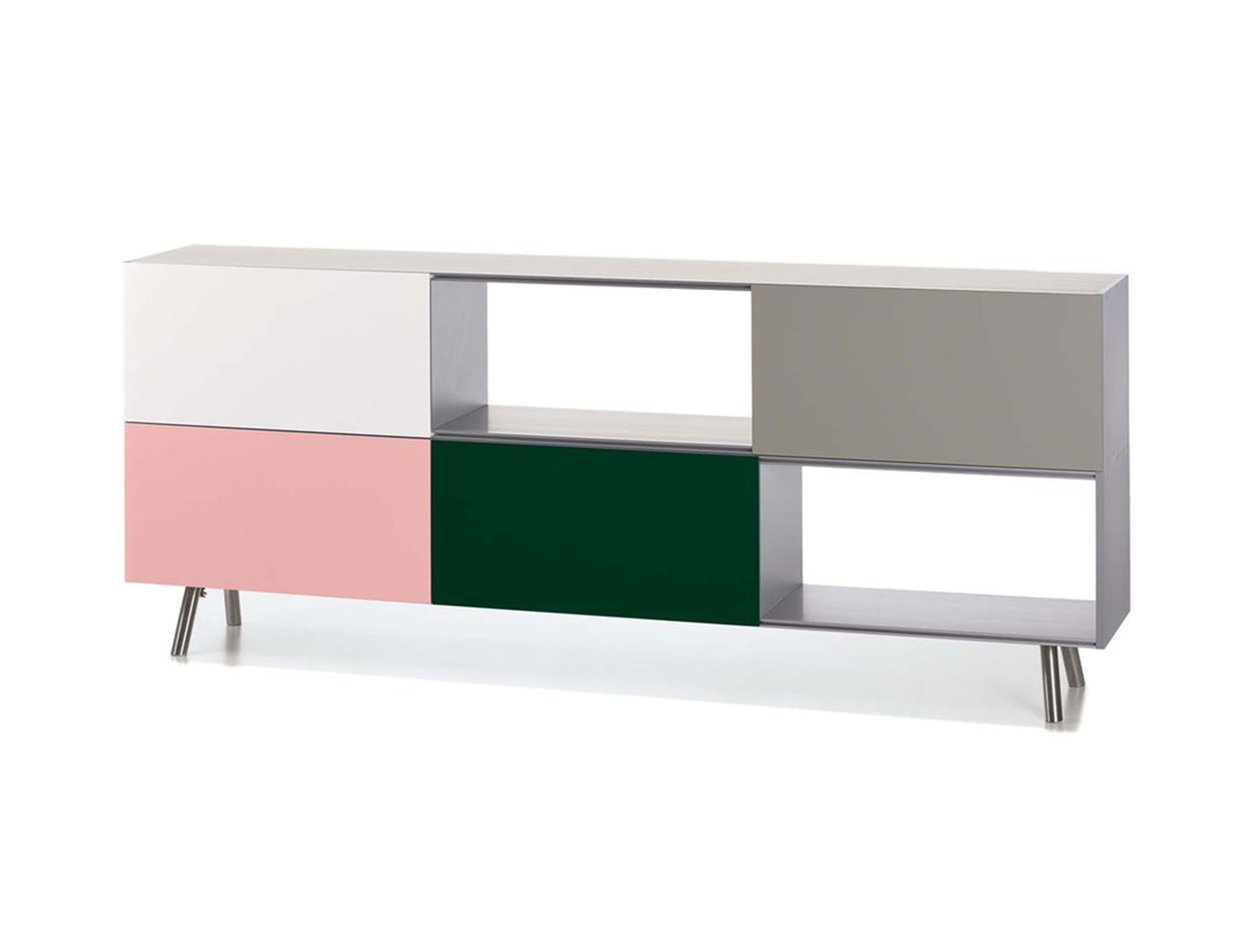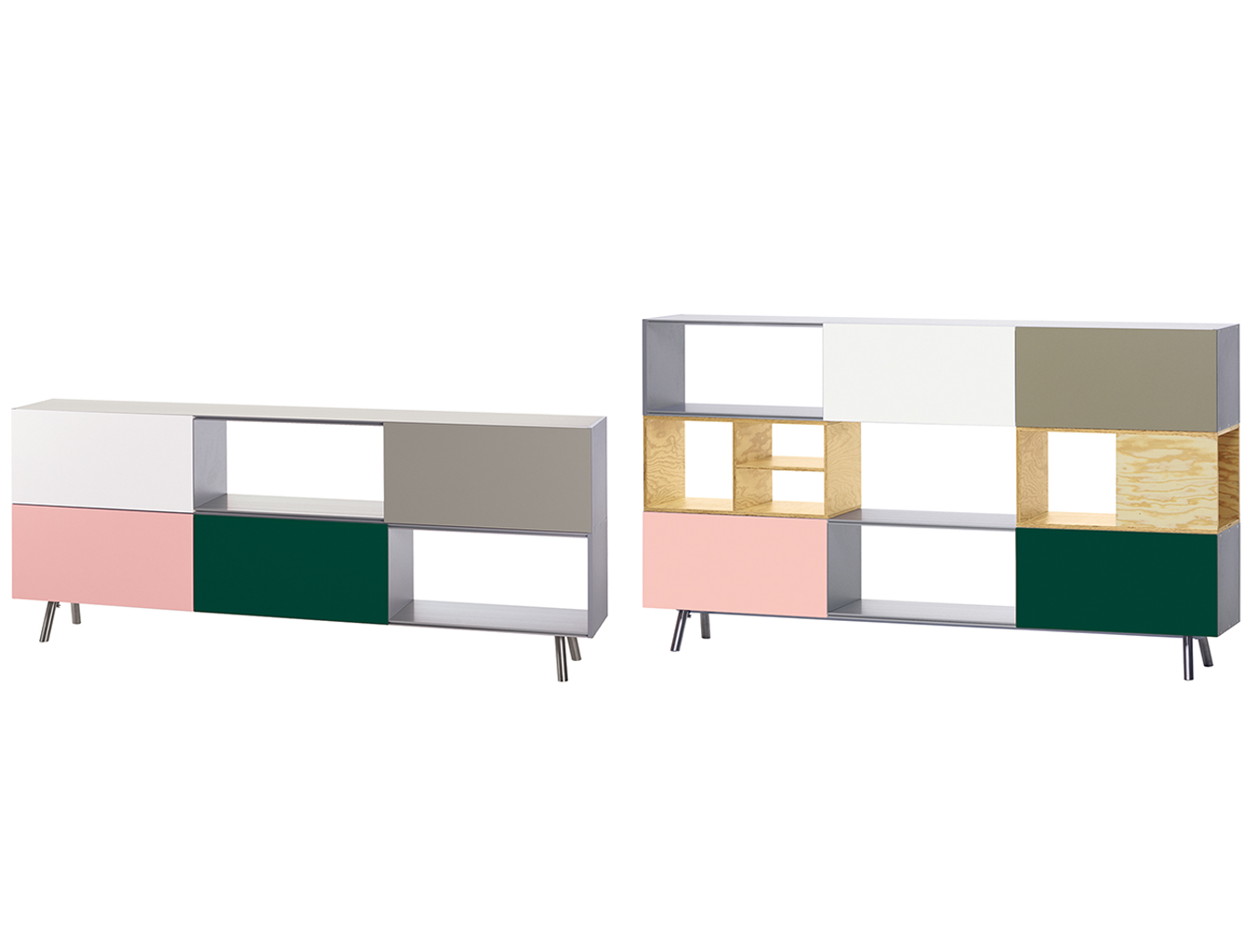 模块化结构,Kast存储单元以侧板作为基本版本开始。 对于中等高度版本,第二个基本模块放置在顶部以创建架子/壁柜组合。 在最高的版本中,添加了两个简单而坚固的木质元素。 Maarten Van Severen特别关注滑动门的颜色,这不仅强调了Kast的比例,而且给人一种清新和乐观的感觉。