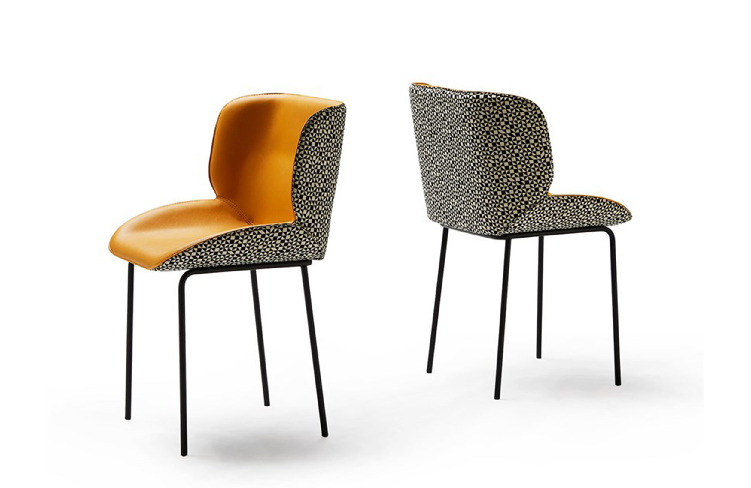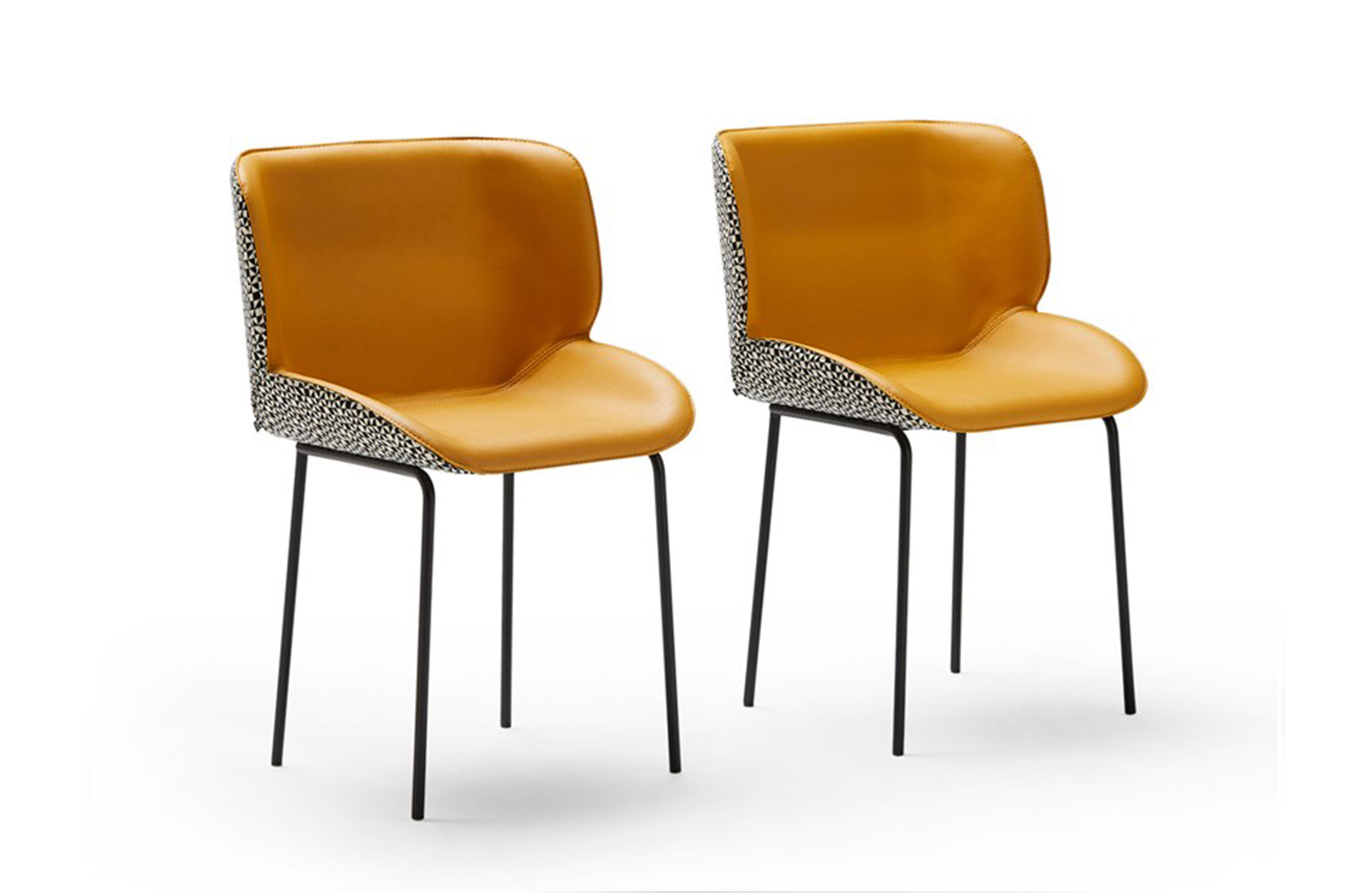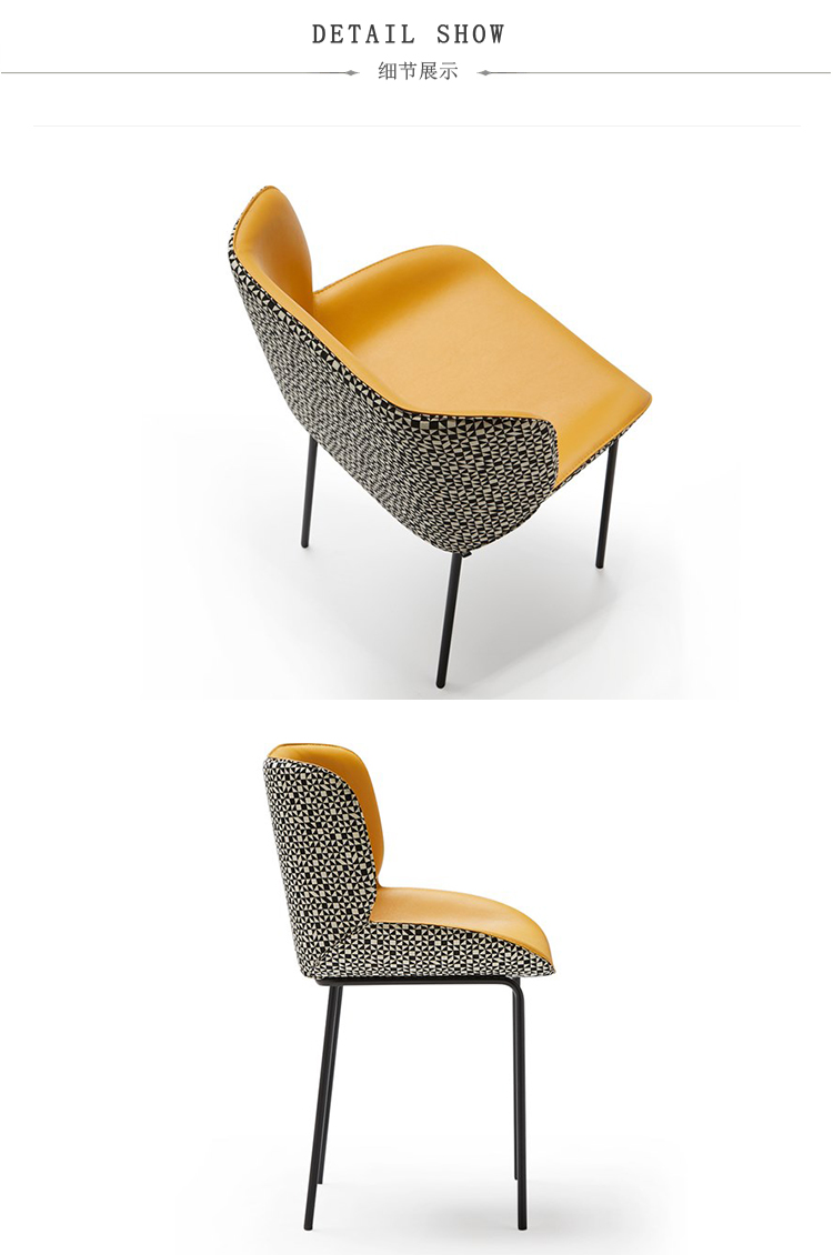 椅子的特点是其大胆的美学座椅和最小的结构之间的对比。当代建筑形式几乎处于平衡状态,一旦你坐在上面就给人一种符合人体工程学的感觉。两个软垫外壳总是优雅地完成了可见的缝合,定义了物体体积和边缘。内部皮革与外部织物之间的对比使得座椅拥抱并且非常舒适,提供适合任何空间(如合同或家居)的组合和饰面的无限可能性。