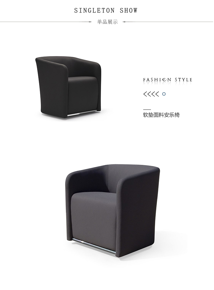休闲沙发。双层成型布艺,无软垫靠背。软垫和胶合内表面。