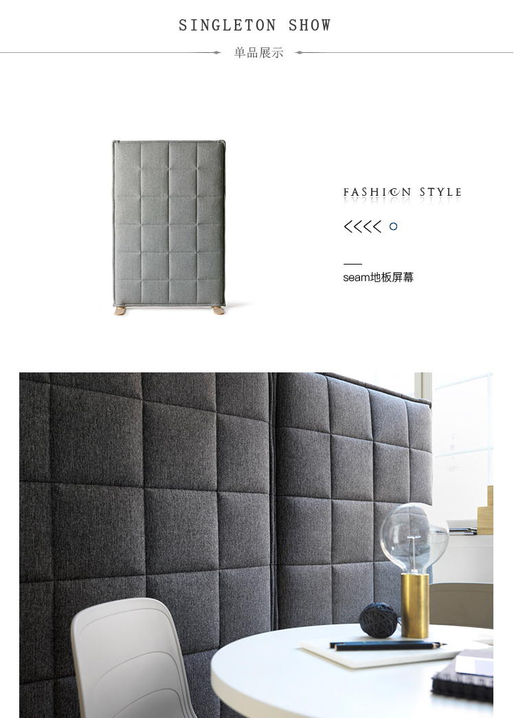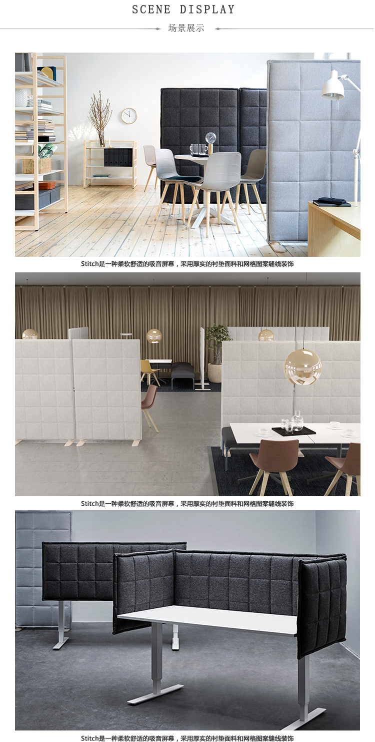 Stitch是一种柔软舒适的吸音屏幕,采用厚实的衬垫面料和网格图案缝线装饰,并安装在精美的灰木腿上。受到沙发,靠垫和羽绒夹克的启发,Stefan Borselius设计Stitch的目的是通过添加人体温暖元素,使经常硬而有棱角的公共空间更受欢迎。出于同样的原因,Stitch同样适用于家庭环境。不用说,它的设计语言也提供了出色的声学特性。
