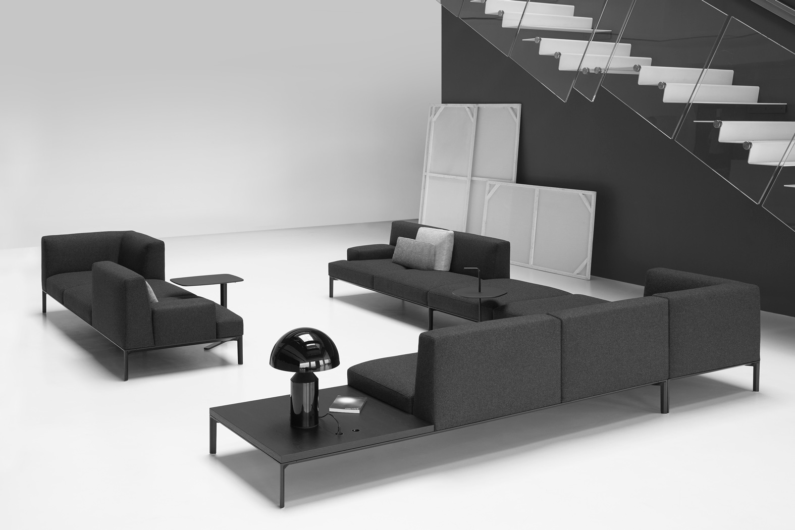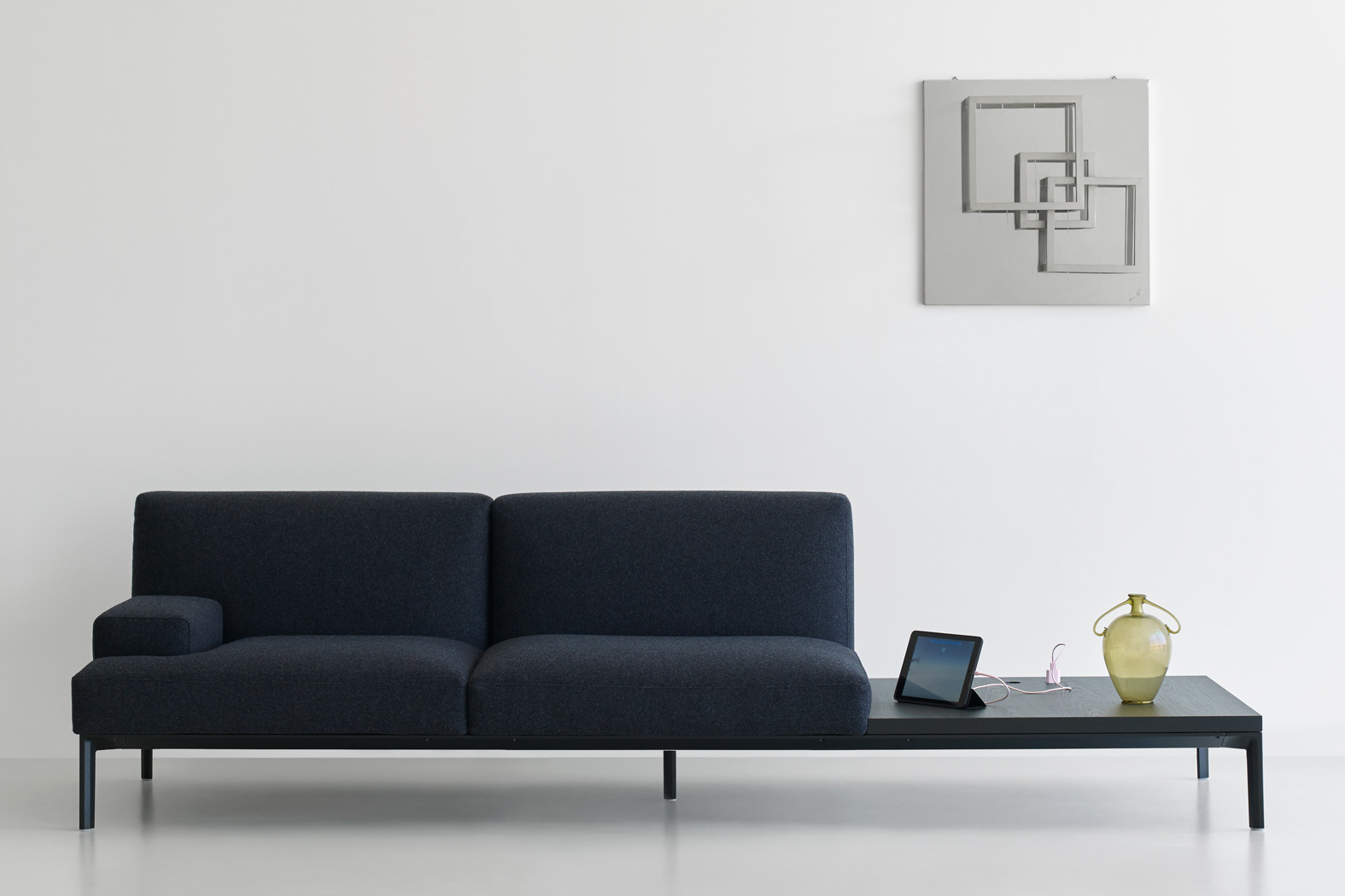 柔软是可能的。你可以想象一个可以容纳宽敞的座位的餐厅。开会的时间,或者仅仅是更多的时间,如在家里。以放松的名义,添加软座椅系统增加了深度,打开了最成功的组合艺术。它的拥抱尺寸,腿的框架降低了高度,为舒适的垫子空间。带有电插座的桌布补充了沙发的功能。很遗憾能从这里站起来。