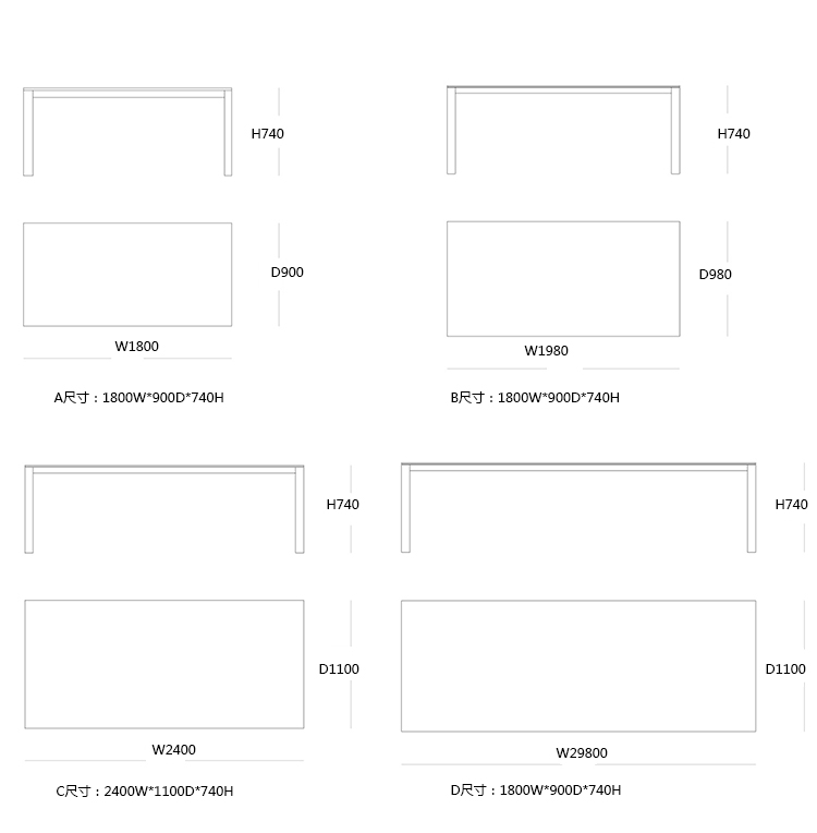 APTA 餐台/洽谈台 系列尺寸/示意图