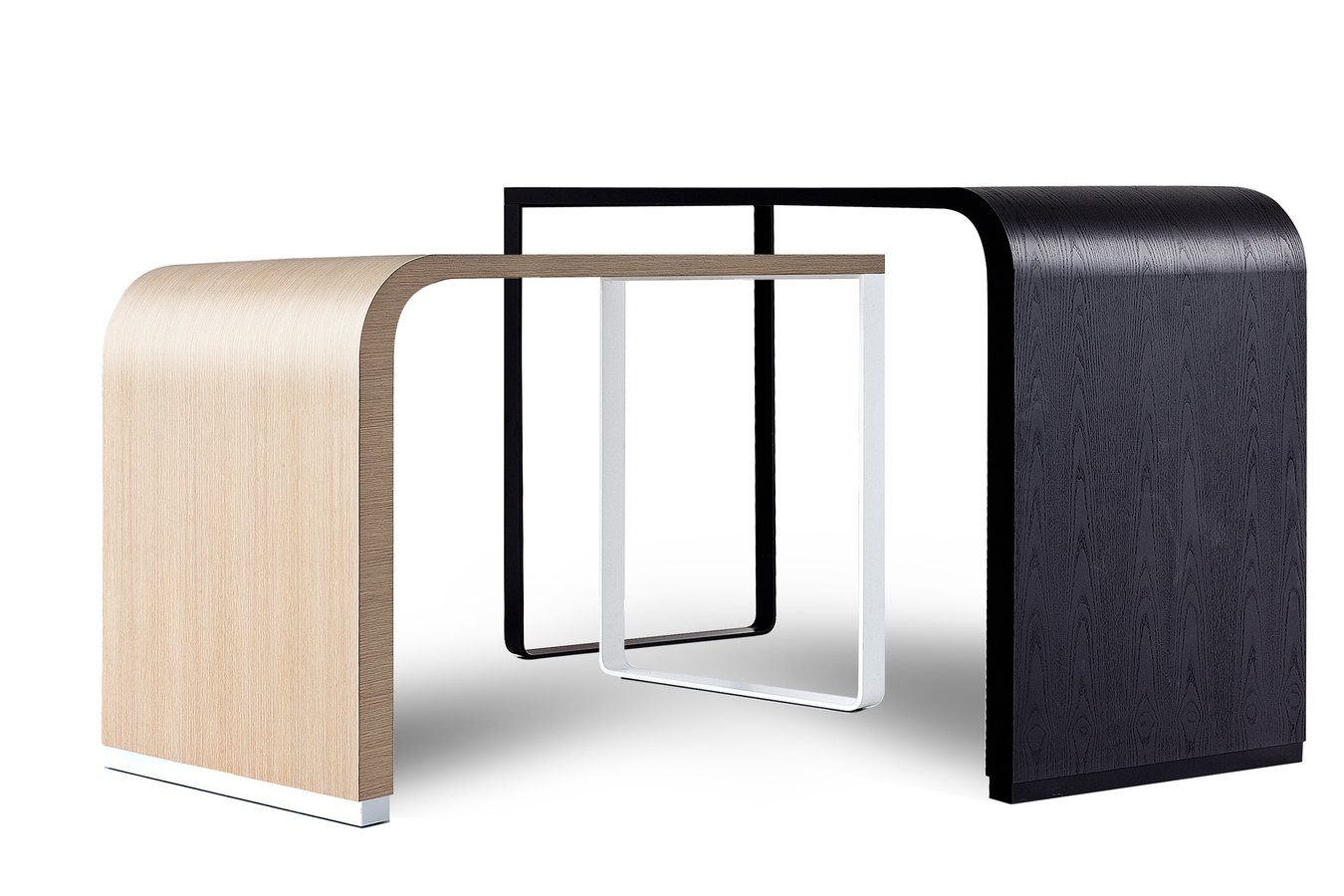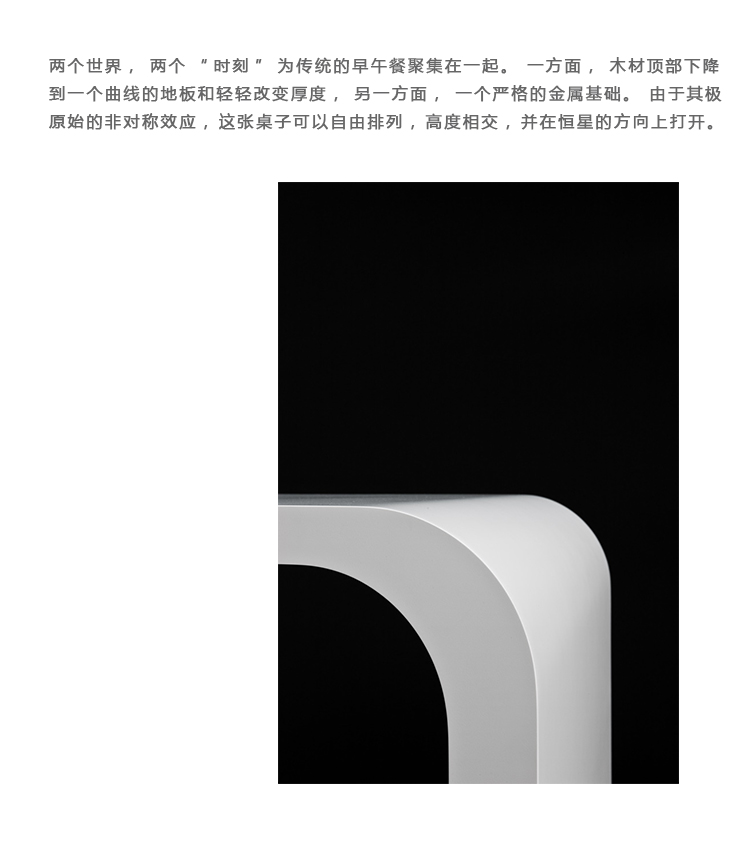 两个世界,两个“时刻”聚集在一起的传统早午餐。一方面,一个木头顶部下降在一个曲线到地板,轻轻地改变厚度,另一方面,一个严格的金属底座。由于其高度原始的不对称效果,这张桌子可以自由排列,高度相交和开放的方向,一个恒星。