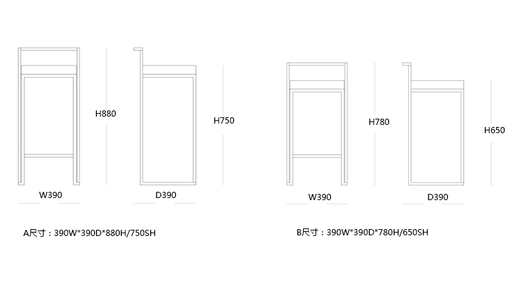 A:390W*390D*880H/750SH