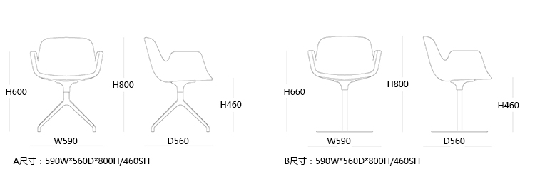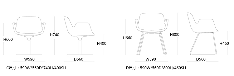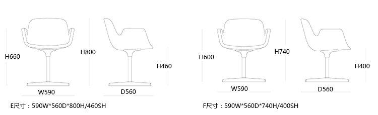 PASS 洽谈椅/餐椅 系列尺寸/示意图