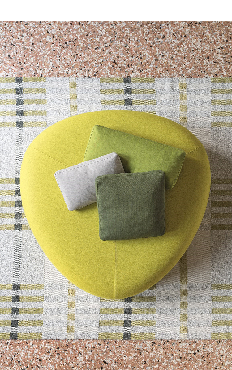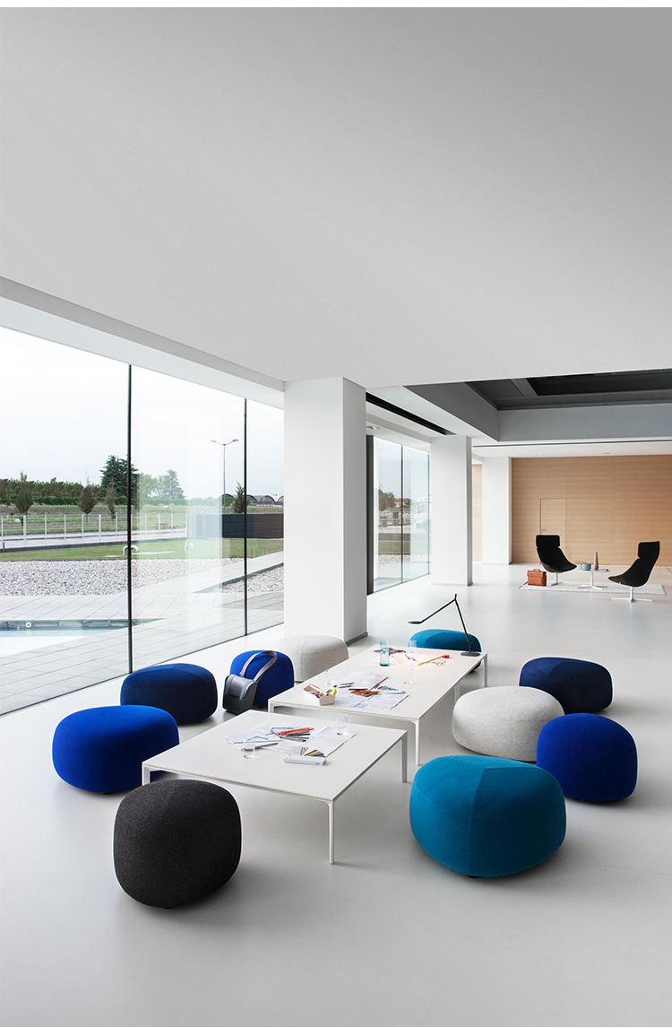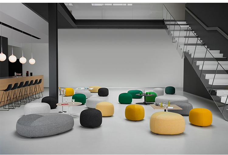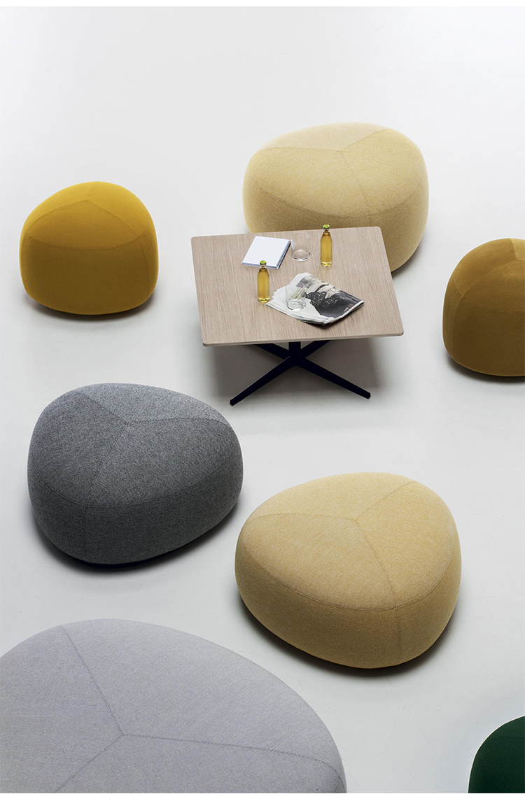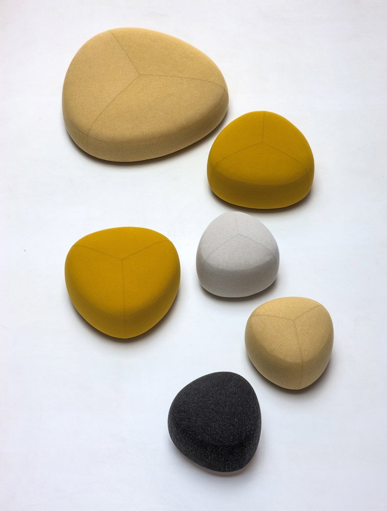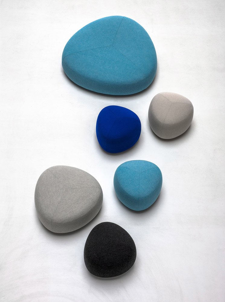 在夏天,在海滩上收集鹅卵石,握在手里,感觉它们的边缘被海浪抚平是一种乐趣。其中一些会在你的口袋里作为一次邂逅的提醒,一个独特的日子。安德森和沃尔追溯了这些快乐的时刻,把最美丽的鹅卵石变成了一个奇妙的坐垫。都有不同的高度、颜色和形状。所有这些都是将车顶变成座椅的通用组合。就好像每一个办公室、休息室和家庭环境都能突然俯瞰北海的海滩。