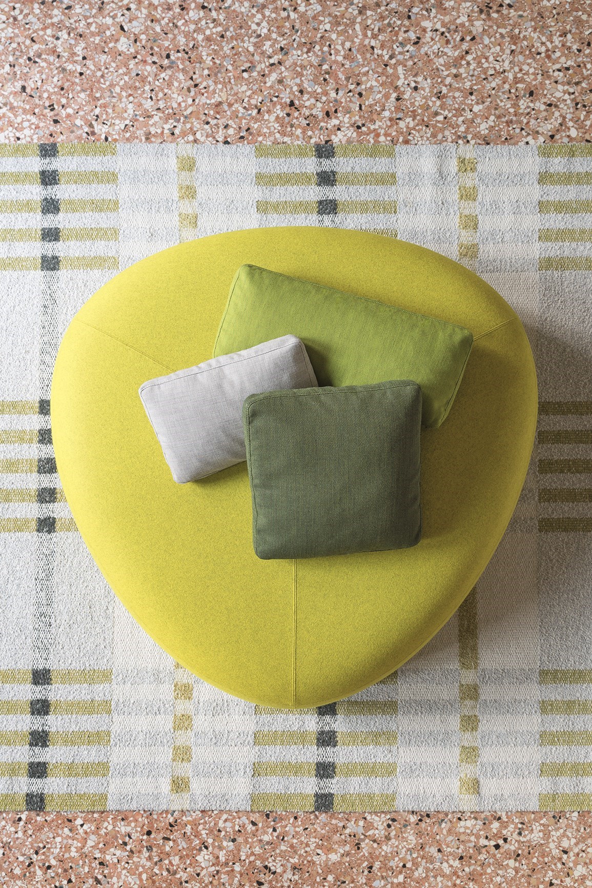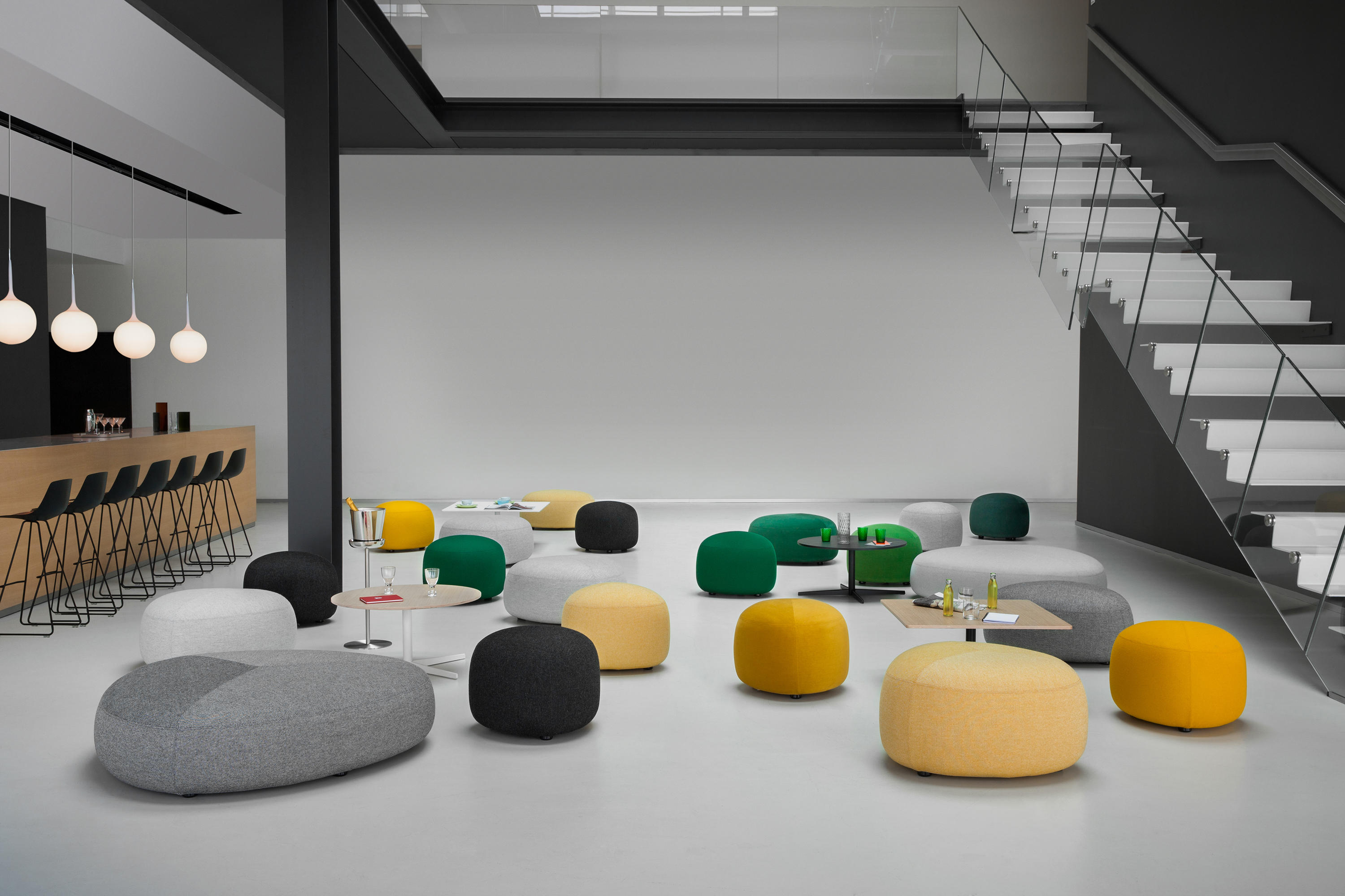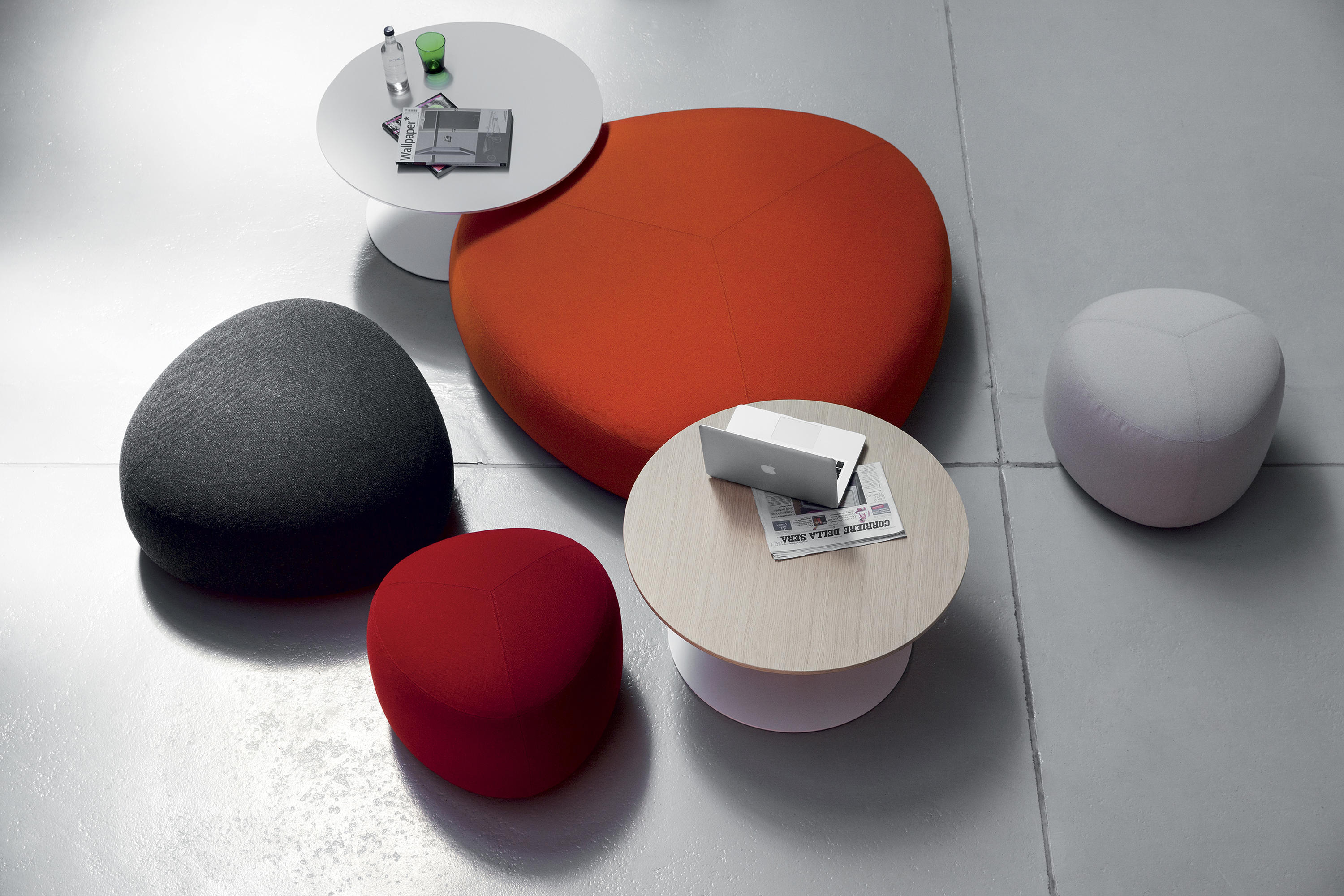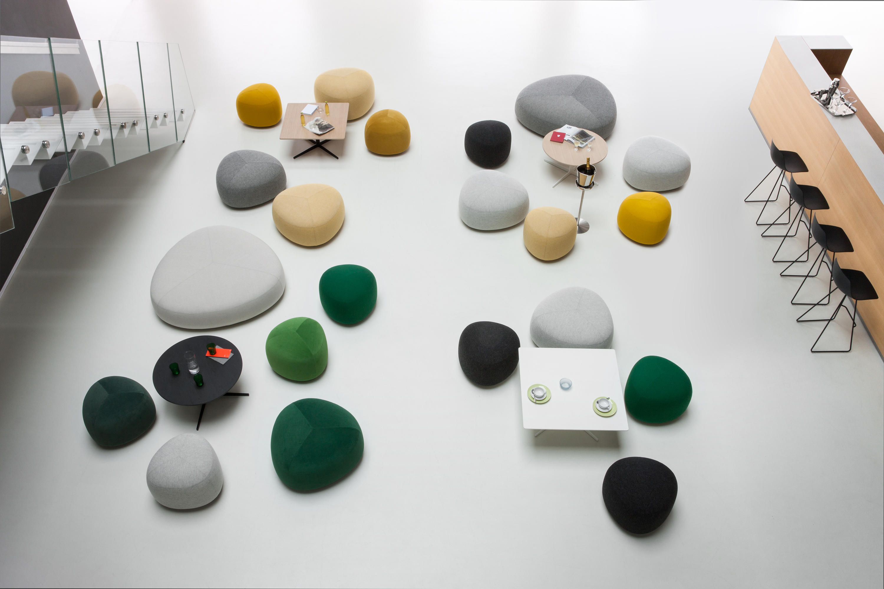 在夏天,在海滩上收集鹅卵石,握在手里,感觉它们的边缘被海浪抚平是一种乐趣。其中一些会在你的口袋里作为一次邂逅的提醒,一个独特的日子。安德森和沃尔追溯了这些快乐的时刻,把最美丽的鹅卵石变成了一个奇妙的坐垫。都有不同的高度、颜色和形状。所有这些都是将车顶变成座椅的通用组合。就好像每一个办公室、休息室和家庭环境都能突然俯瞰北海的海滩。