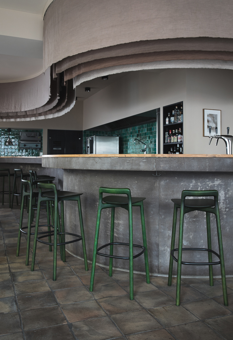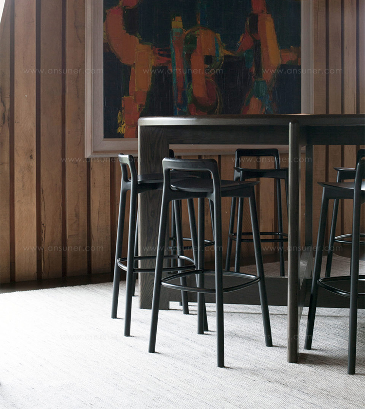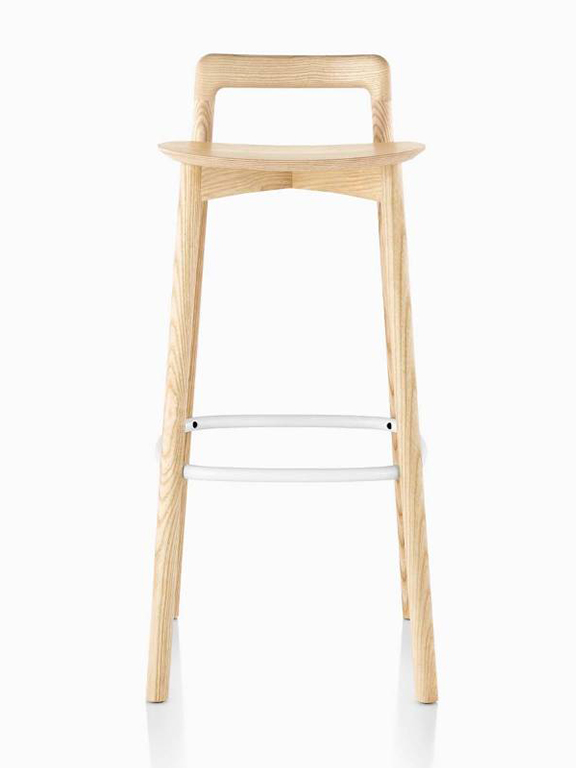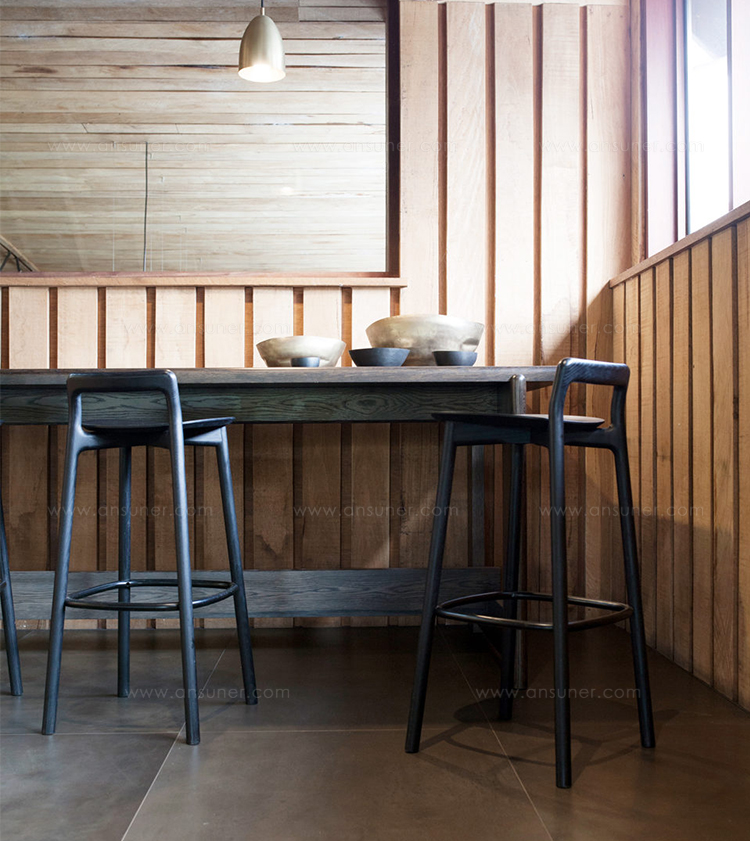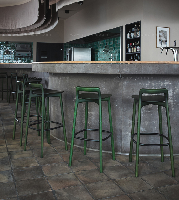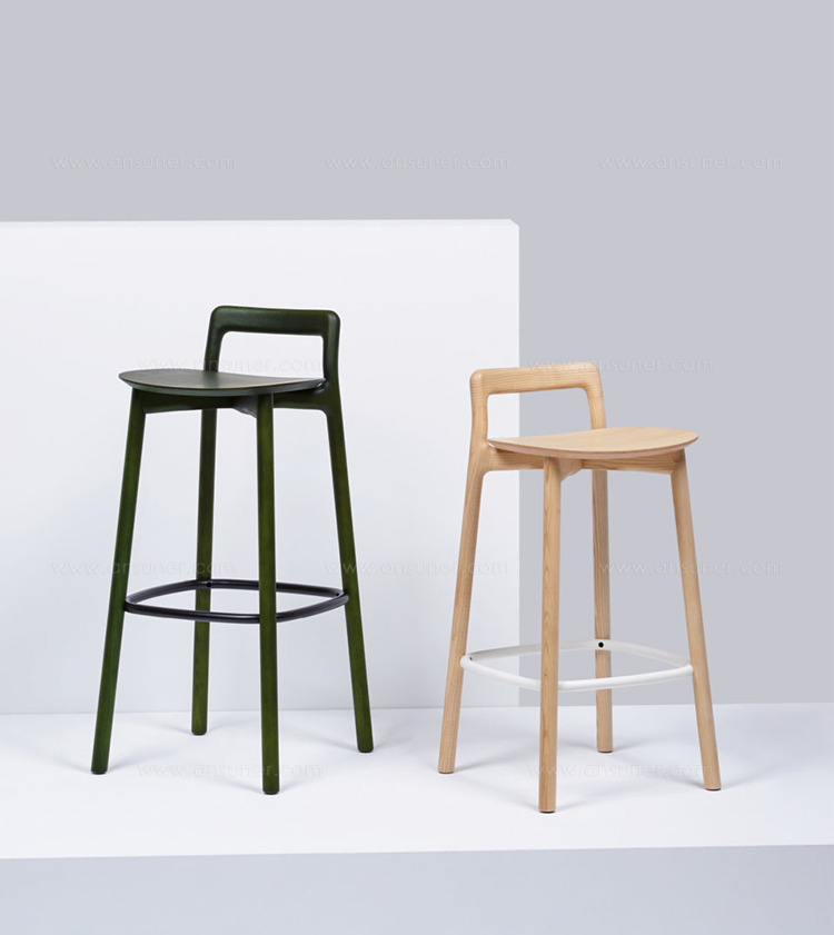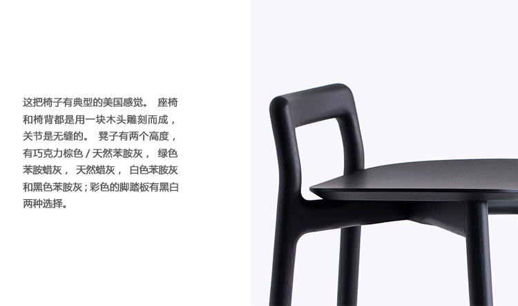 Mattiazzi布兰卡吧椅结合了精密的技术和手工艺品的热度。和椅子和桌子一样,这个设计灵感来自于树的枝干(意大利语“布兰卡”)弯曲、交汇和分枝的方式。凳子细长的木腿连接并交叉以支持一个轮廓的座位,并向上延伸以形成一个支持性的靠背。一个弯曲的金属脚架复制座椅的轮廓。凳子有两个高度,有巧克力棕色/天然苯胺灰,绿色苯胺蜡灰,天然蜡灰,白色苯胺灰和黑色苯胺灰;彩色的脚踏板有黑白两种选择。