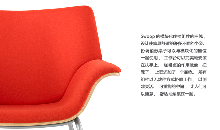 在加州艺术学院(California College of Art)担任讲师期间,工业设计师布莱恩·凯恩(Brian Kane)观察了学生们在校园公共场合如何与家具互动。他注意到他们中很少有人以传统的方式坐着。他们坐在武器。他们蜷缩着。它们伸展四肢。这一发现激发了一种多才多艺、流畅的设计反应,成为了休闲家具的“Swoop”系列。