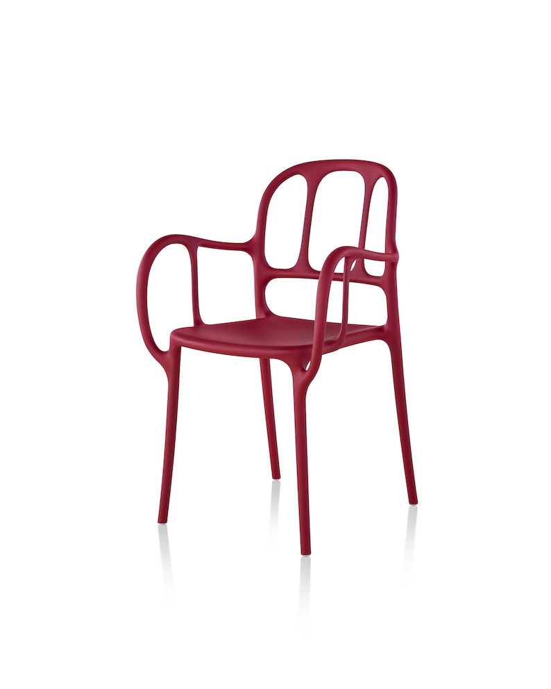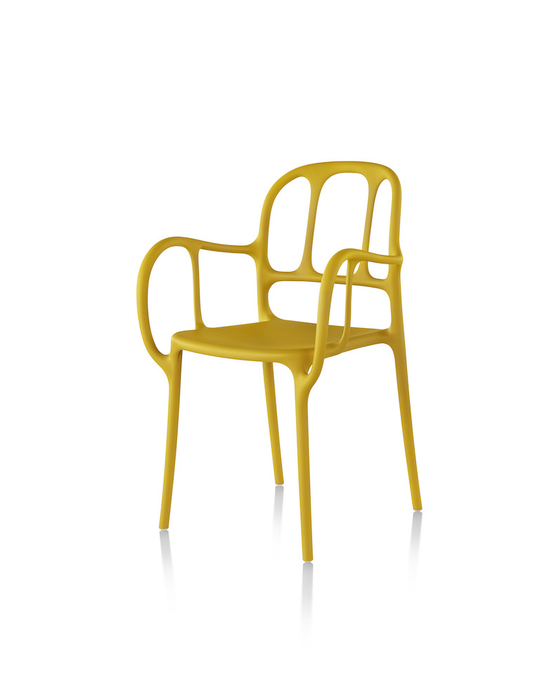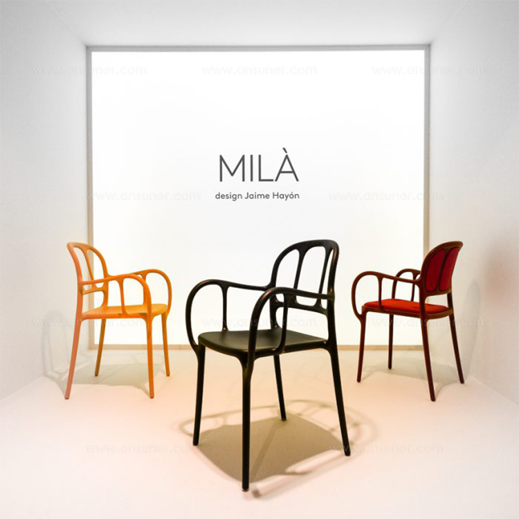 西班牙艺术设计师Jaime Hayon使用空气成型技术来实现Magis Mila椅子的弯曲形状。它的动态的,手势线条让人想起加泰罗尼亚现代主义的影响,而它的玻璃纤维增强聚丙烯材料(这是Hayon的第一个,他通常在木材、金属或陶瓷上工作)在应用和着色方面都具有通用性。Mila的高度可达六英尺。