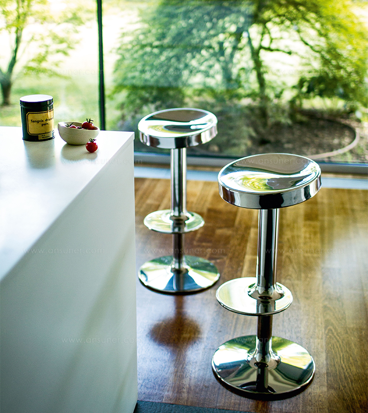 可旋转可调的不锈钢凳子,适合户外使用。活塞完全集成在阀座下面,进行了全方位的设计。