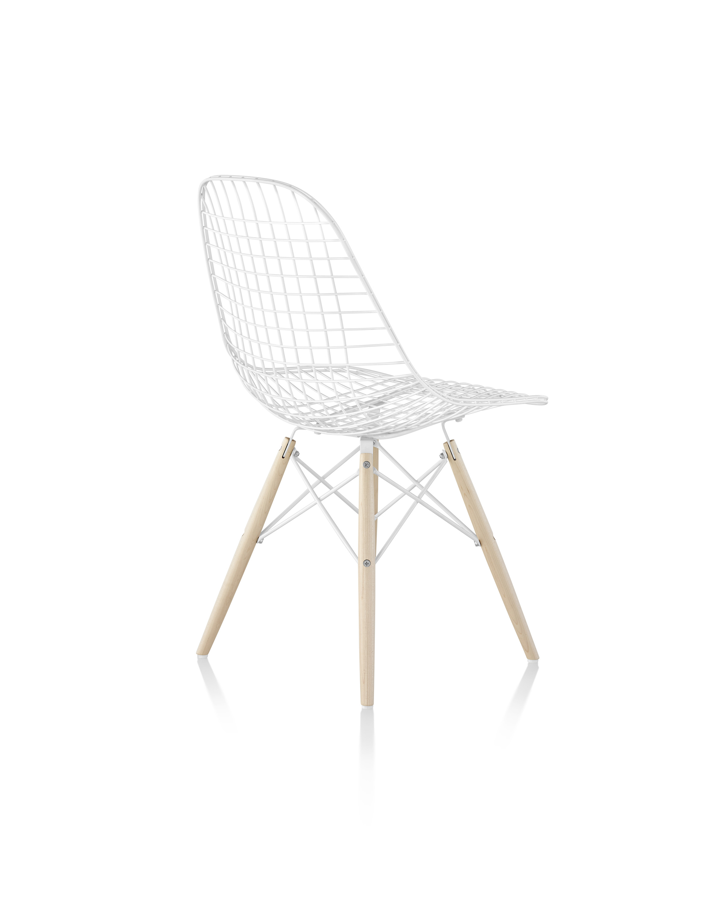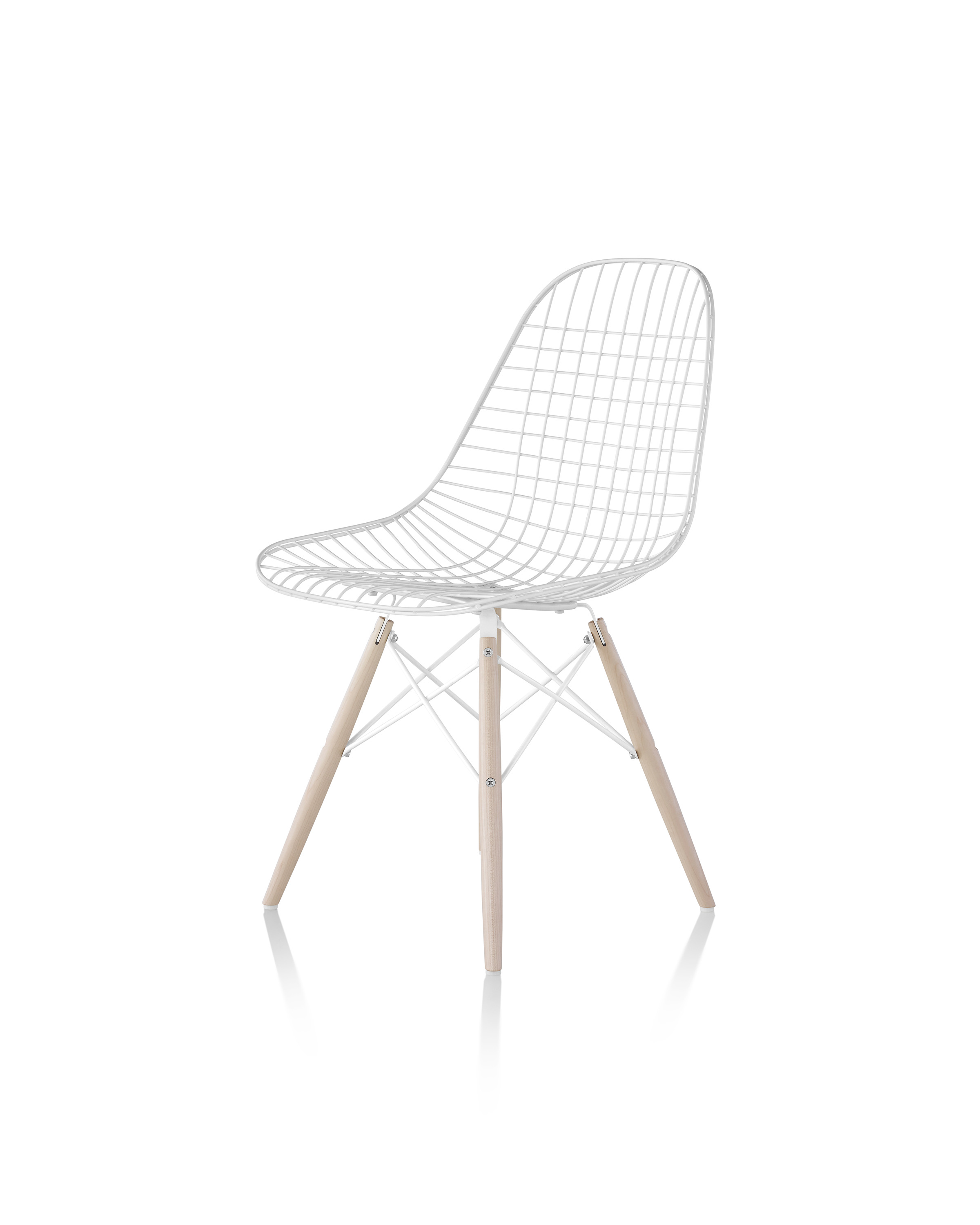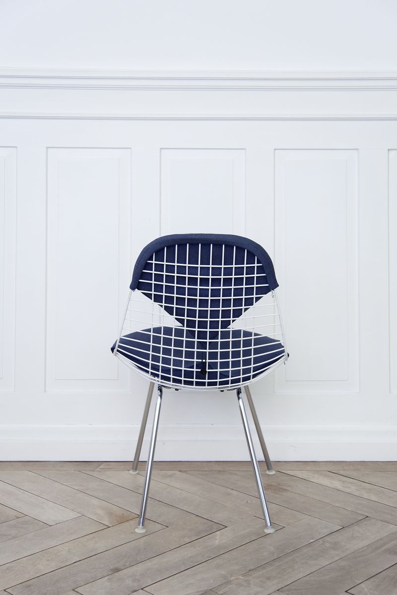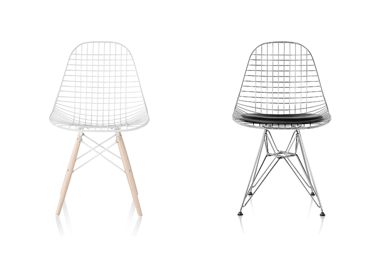 Charles & Ray Eames 1951 年發表的 Wire Chair 系列,以一片式有機網狀椅座,延伸變化出一系列不同椅腳及座墊搭配的單椅,這系列椅款輕巧透明的設計,在 60 年代可說是運用了當時最先進的技術來製作,靈感則是來自於鏤空的金屬收納籃,金屬條交織的椅座,彎曲的弧面不僅符合人體工學,在視覺上更具有穿透性。