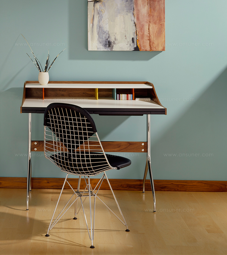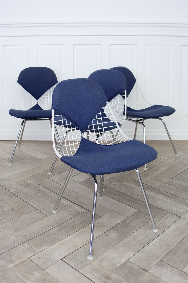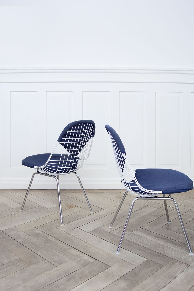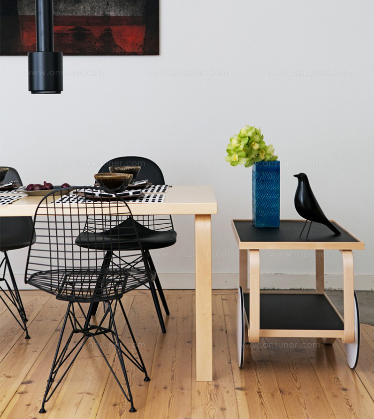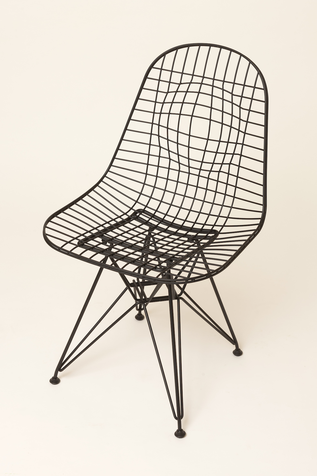Charles & Ray Eames 1951 年發表的 Wire Chair 系列,以一片式有機網狀椅座,延伸變化出一系列不同椅腳及座墊搭配的單椅,這系列椅款輕巧透明的設計,在 60 年代可說是運用了當時最先進的技術來製作,靈感則是來自於鏤空的金屬收納籃,金屬條交織的椅座,彎曲的弧面不僅符合人體工學,在視覺上更具有穿透性。